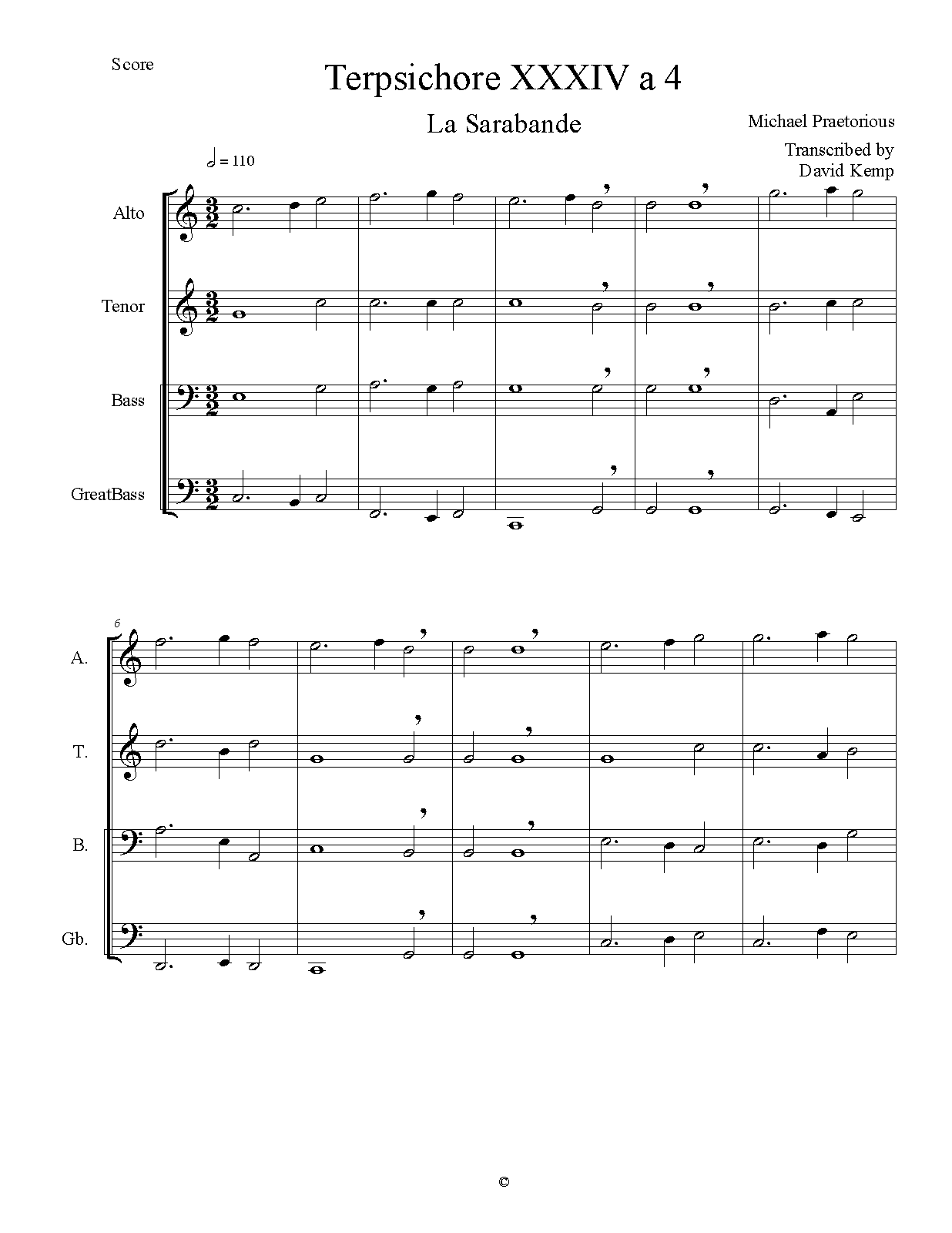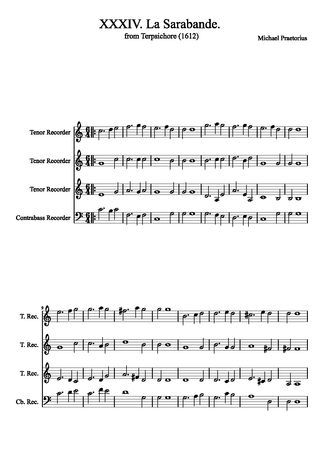 | Extra Information | These pieces were assembled and arranged by Praetorius for his 1612 collection. It is unknown how many, or if any, of the works in the collection were actually composed by Praetorius as opposed to being popular dance tunes arranged by him. The instrumentation is not specified in the original, and simply listed as "à 4". |