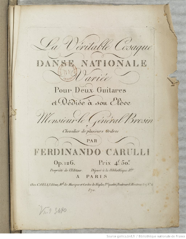 | Alternative. Title | La Véritable Cosaque, Danse Nationale, Variée pour deux Guitares |