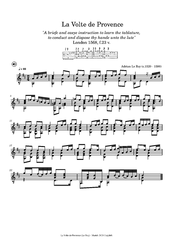 | Extra Information | in "A briefe and easye instruction to learn the tablature, to conduct and dispose thy hande unto the lute" London 1568, f.23 v. |