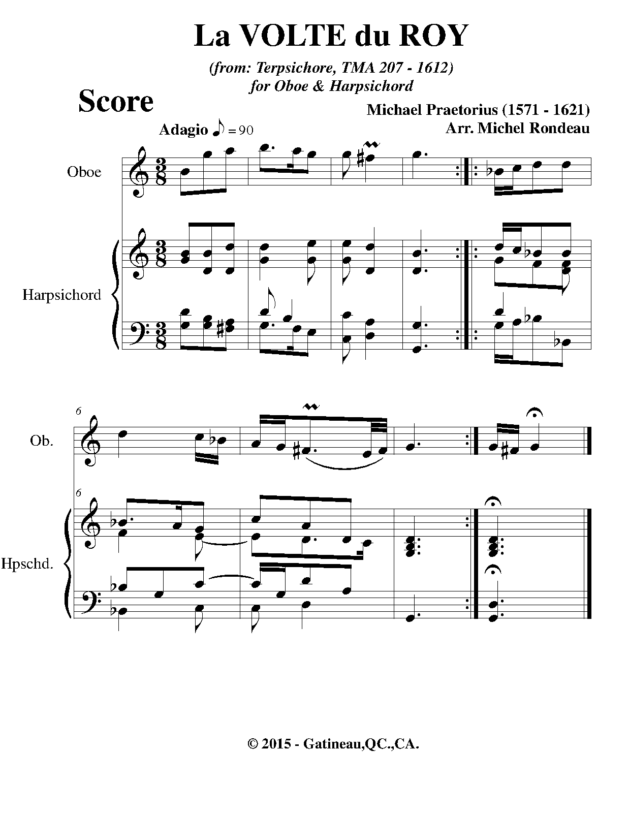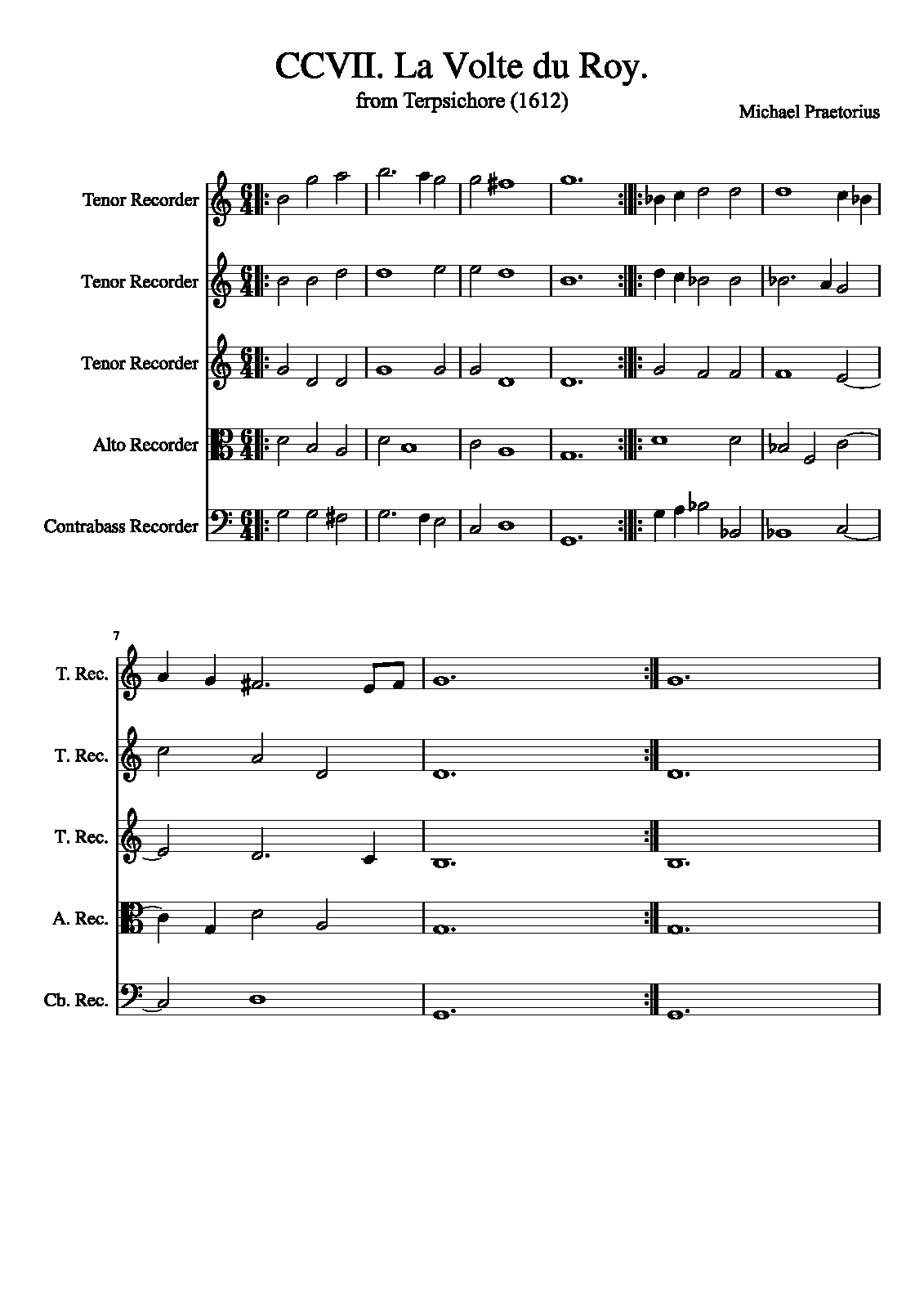| Extra Information | These pieces were assembled and arranged by Praetorius for his 1612 collection. It is unknown how many, or if any, of the works in the collection were actually composed by Praetorius as opposed to being popular dance tunes arranged by him. The instrumentation is not specified in the original, and simply listed as "à 5". |