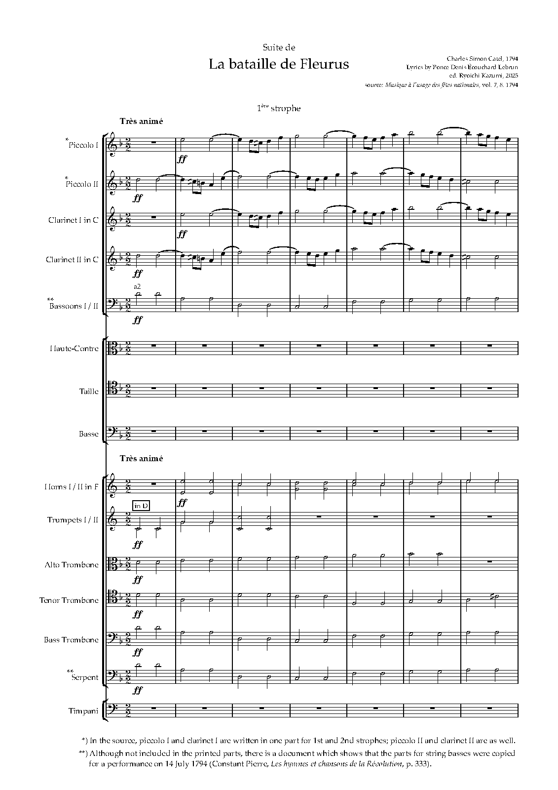 | Extra Information | Catel also composed 4th strophe ("Ô renommée, à ces nouvelles") but it only partially remains. |