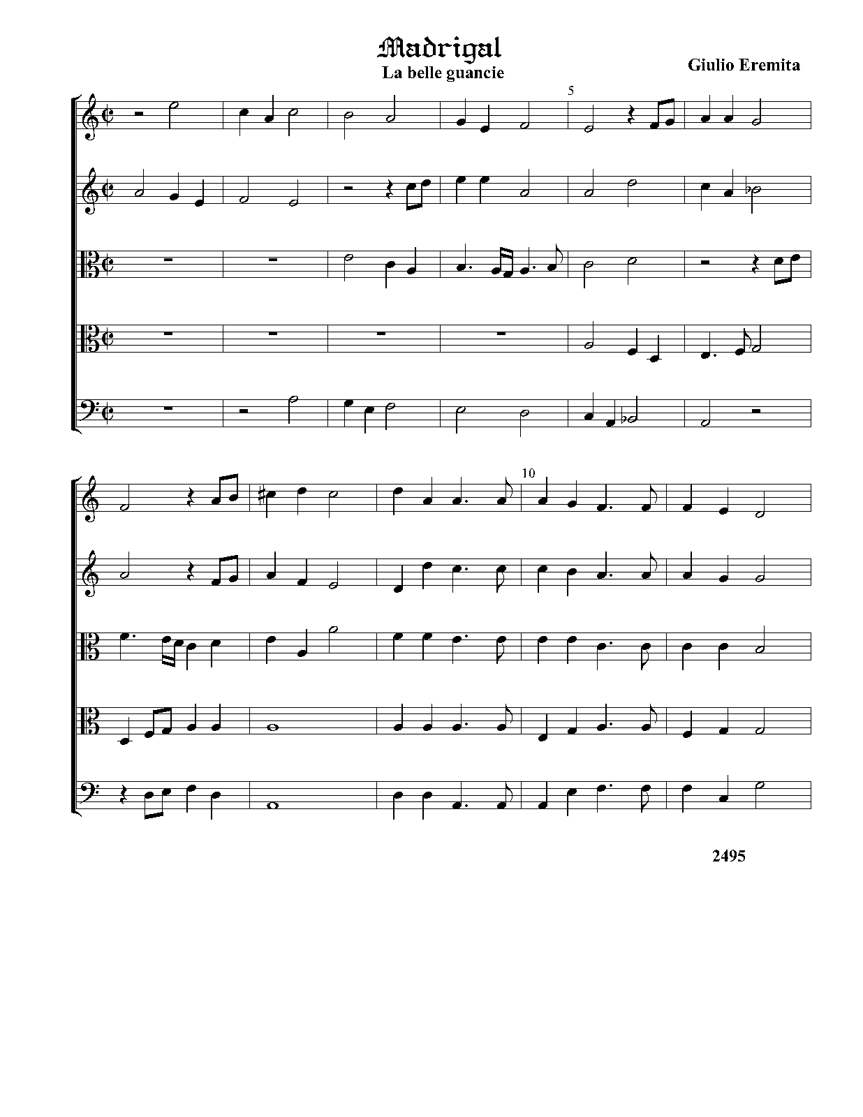 Published in Phalese's 1596 Paradiso Musicale di Madrigali et Canzoni a Cinque Voci though it is unclear whether that was the first publication, since Eremita also published 2 other books of 5-voice madrigals in the 1580s.
