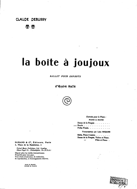 Publisher. Info. Paris: Durand et Cie., 1913. Plate D. & F. 8935.