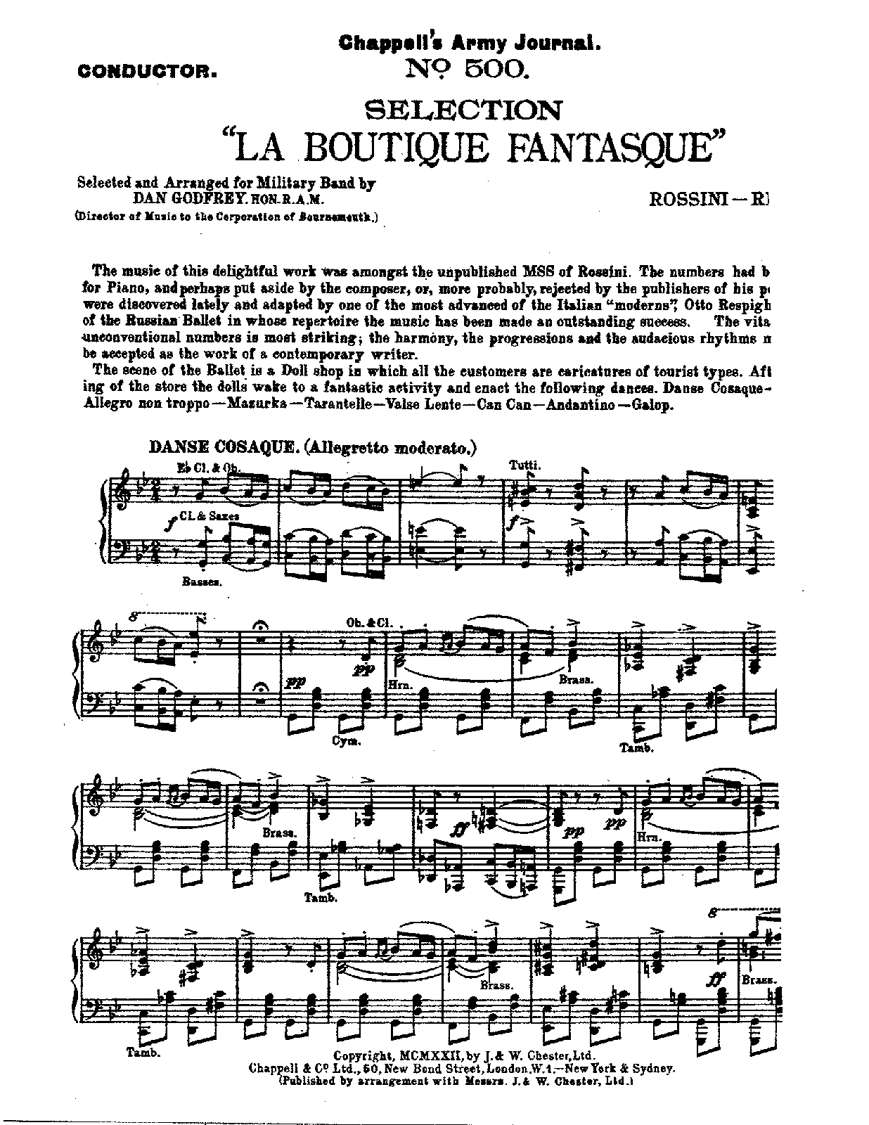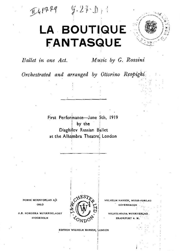 | Extra Information | Based upon piano pieces of Gioacchino Rossini (1792-1868). |