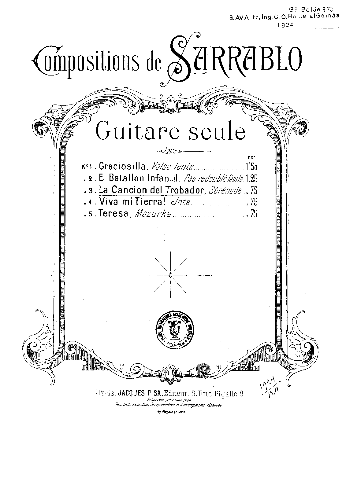 | Genre Categories | Canciones; For guitar; Scores featuring the guitar; For 1 player |