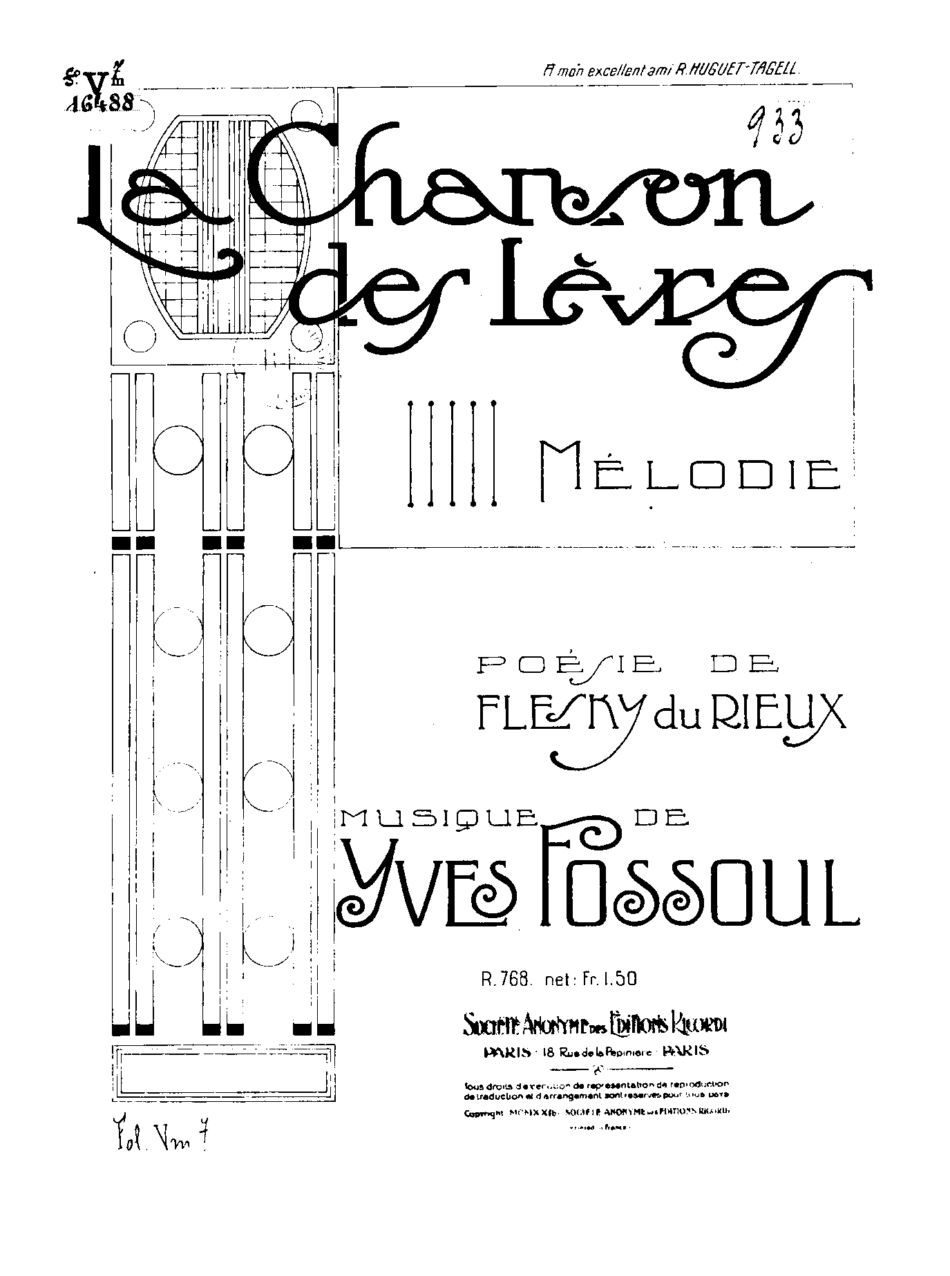 | Genre Categories | Melodies; Songs; For voice, piano; |