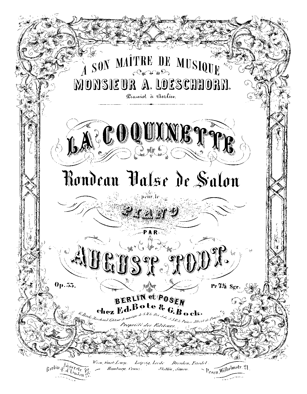 | Dedication | à son maître de musique Monsieur Albert Loeschhorn pianist à Berlin |