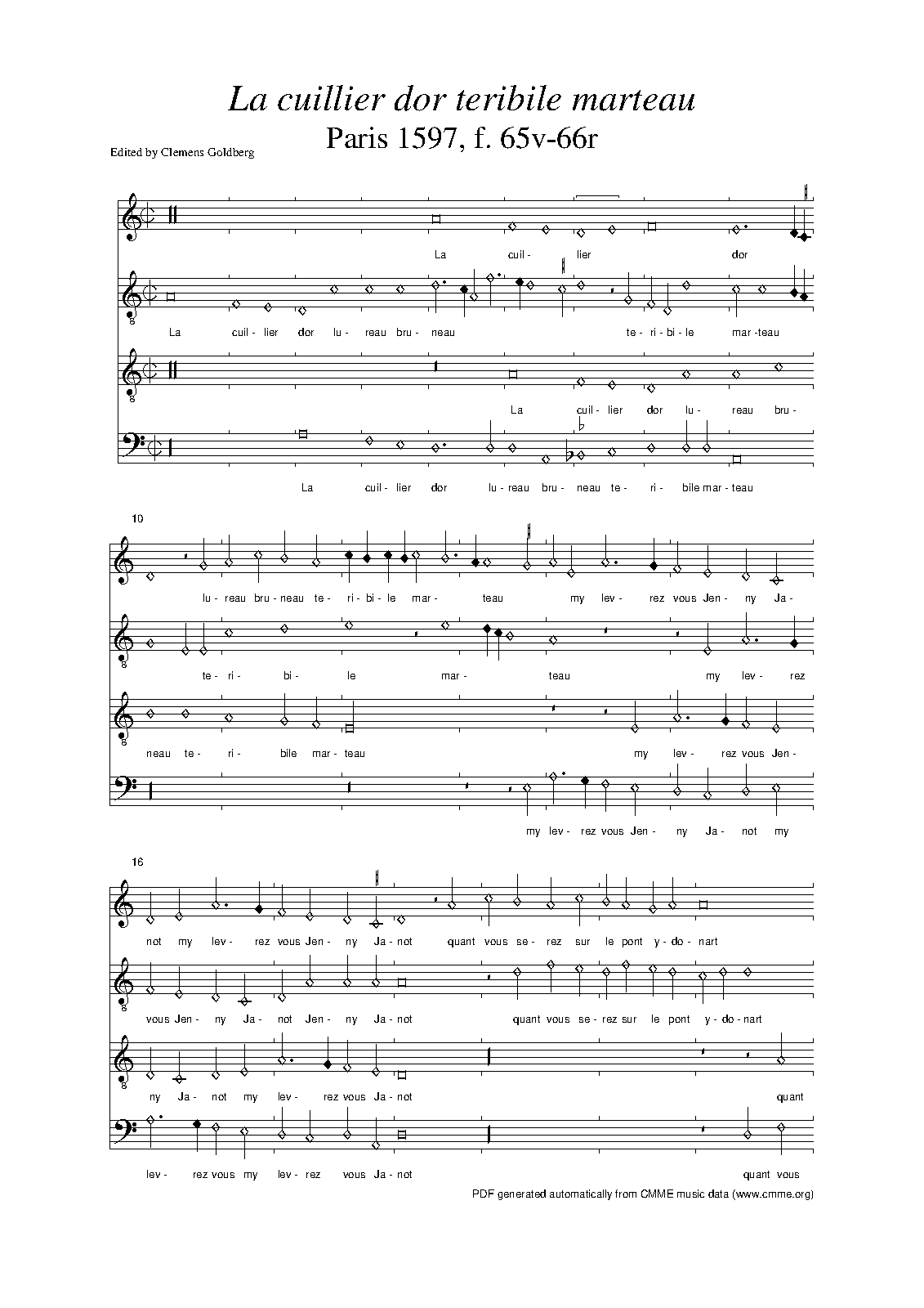 | Genre Categories | Chansons; Songs; For 4 voices; |