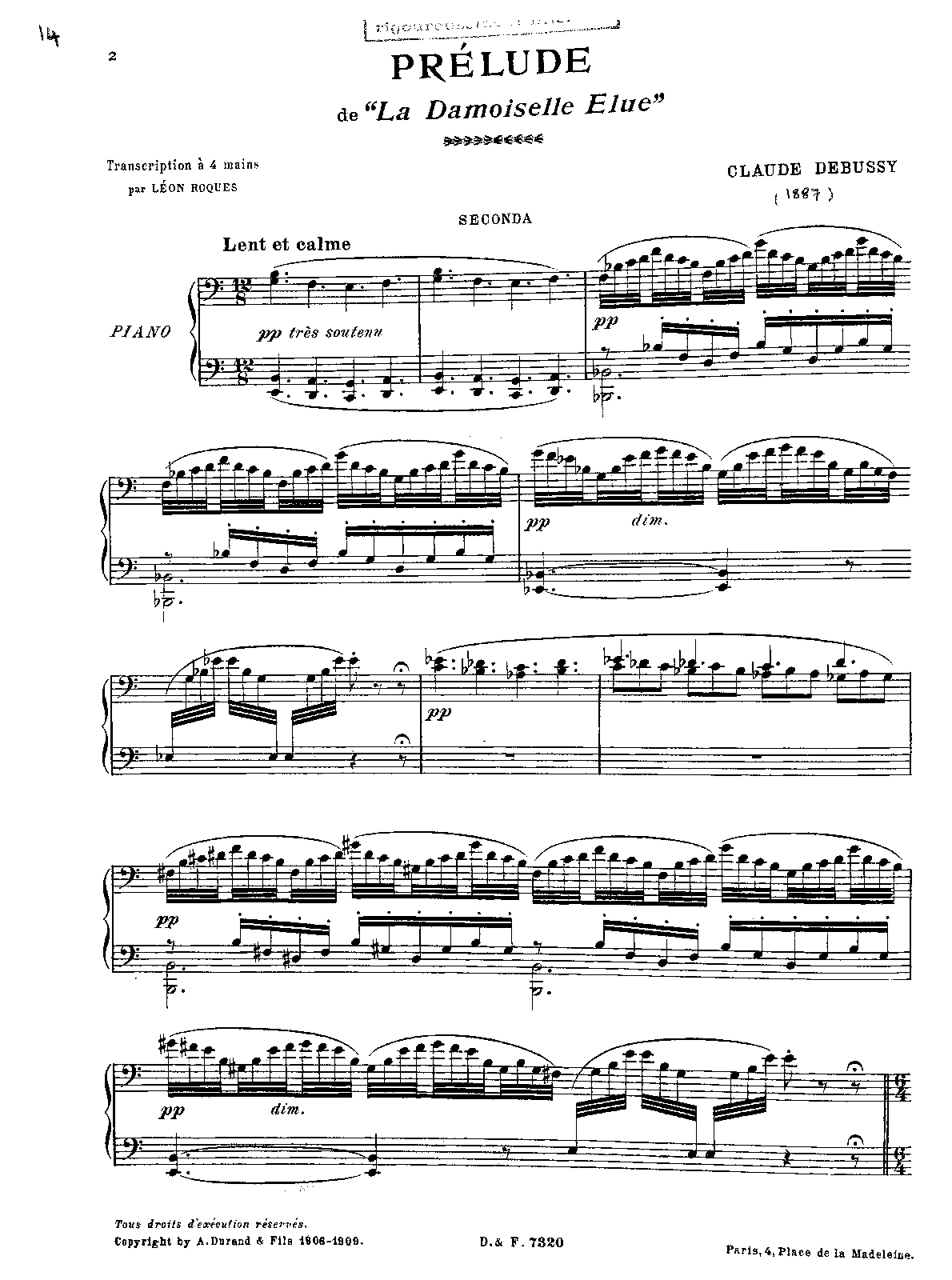 The two versions differ mainly in orchestration. The work can be sung by one voice (mezzo) singing both roles, or two voices. Debussy became familiar with Rossetti's poetry through Sarrazin's Poètes modernes de l'Angleterre, published in the mid-1880s.
