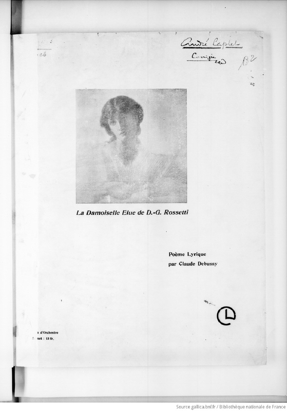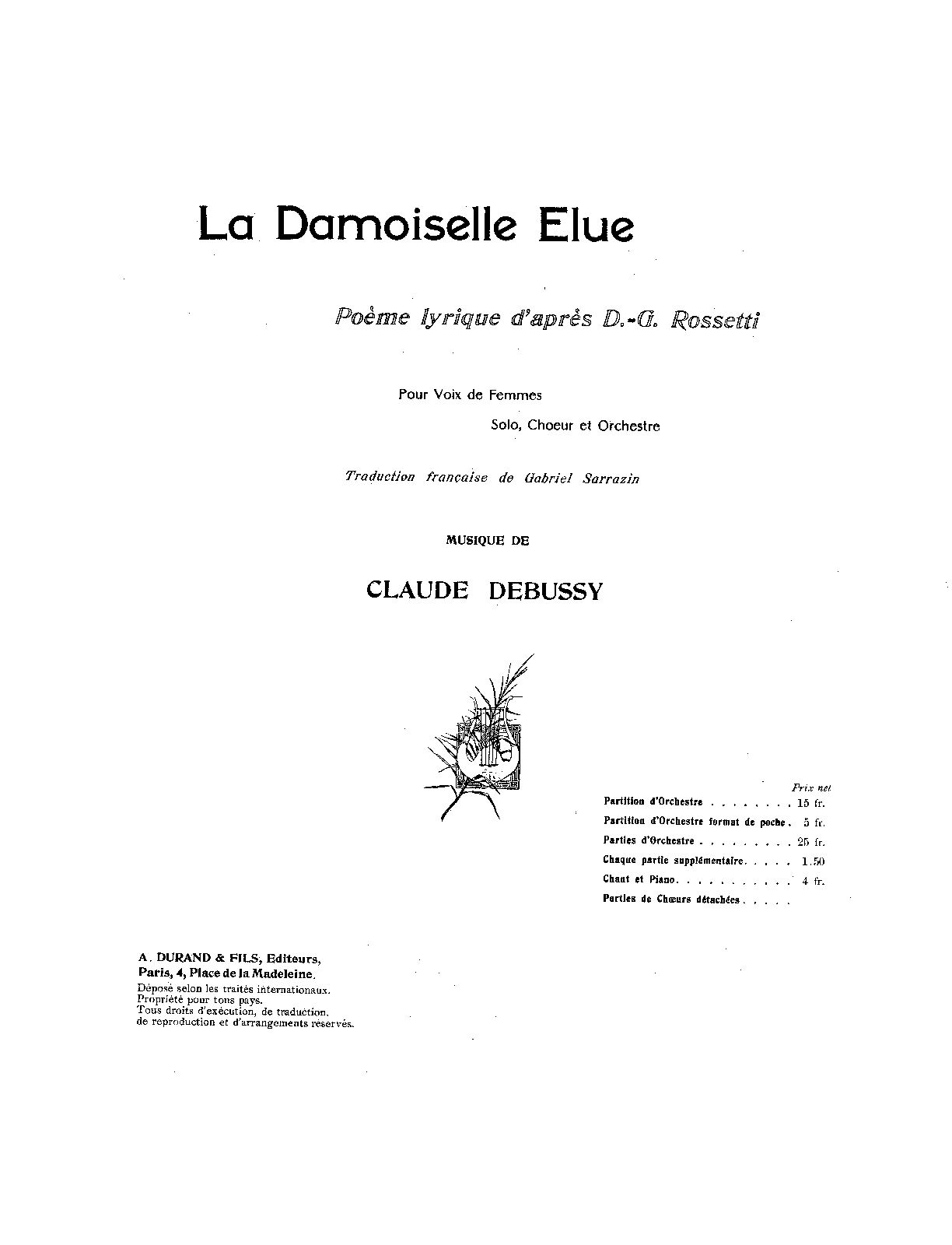 The two versions differ mainly in orchestration. The work can be sung by one voice (mezzo) singing both roles, or two voices. Debussy became familiar with Rossetti's poetry through Sarrazin's Poètes modernes de l'Angleterre, published in the mid-1880s.