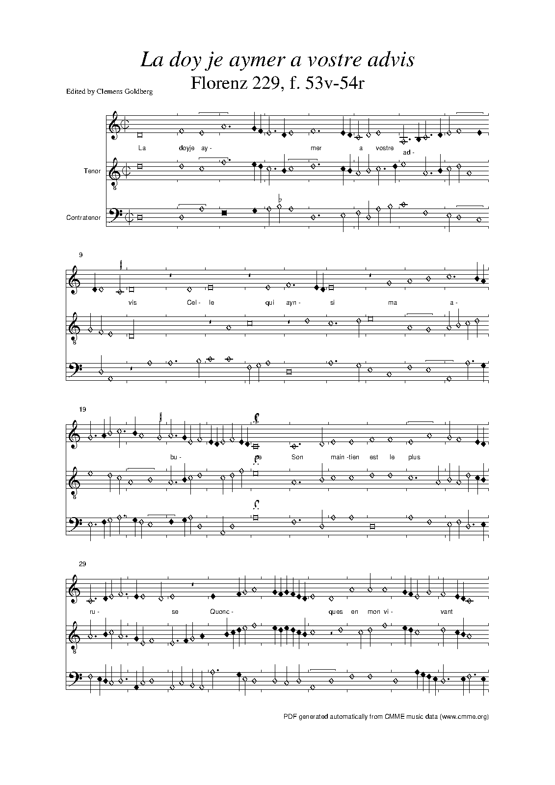 | Work Title | La doy je aymer a vostre advis |