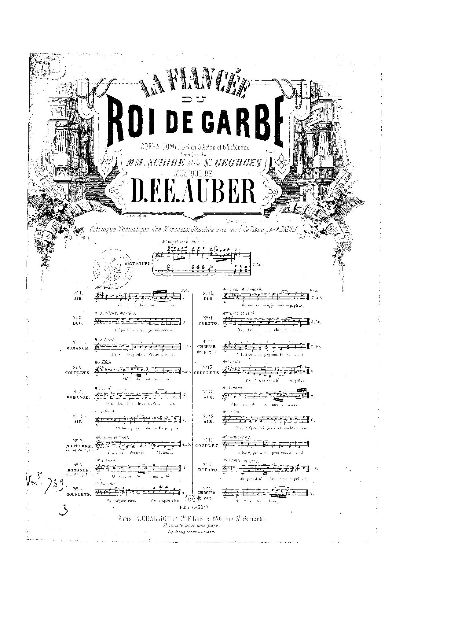 | Copyright Information | Publication noted in the Bibliographie de la France : 53e année, 2e série, Nº 12, 19 Mars 1864, p.142, reg.698 (vocal score). |