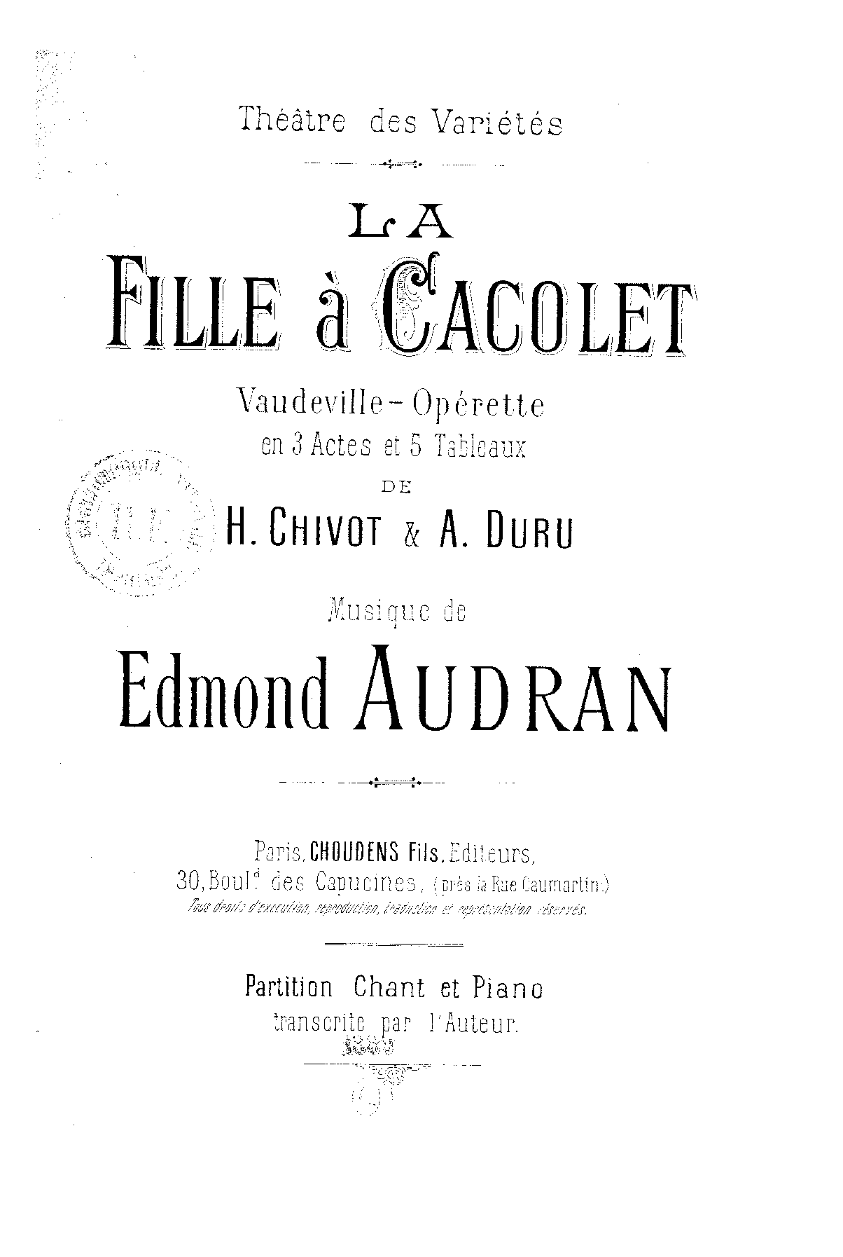 | Librettist | Henri Chivot (1830–1897) Alfred Duru (1829–1899) |