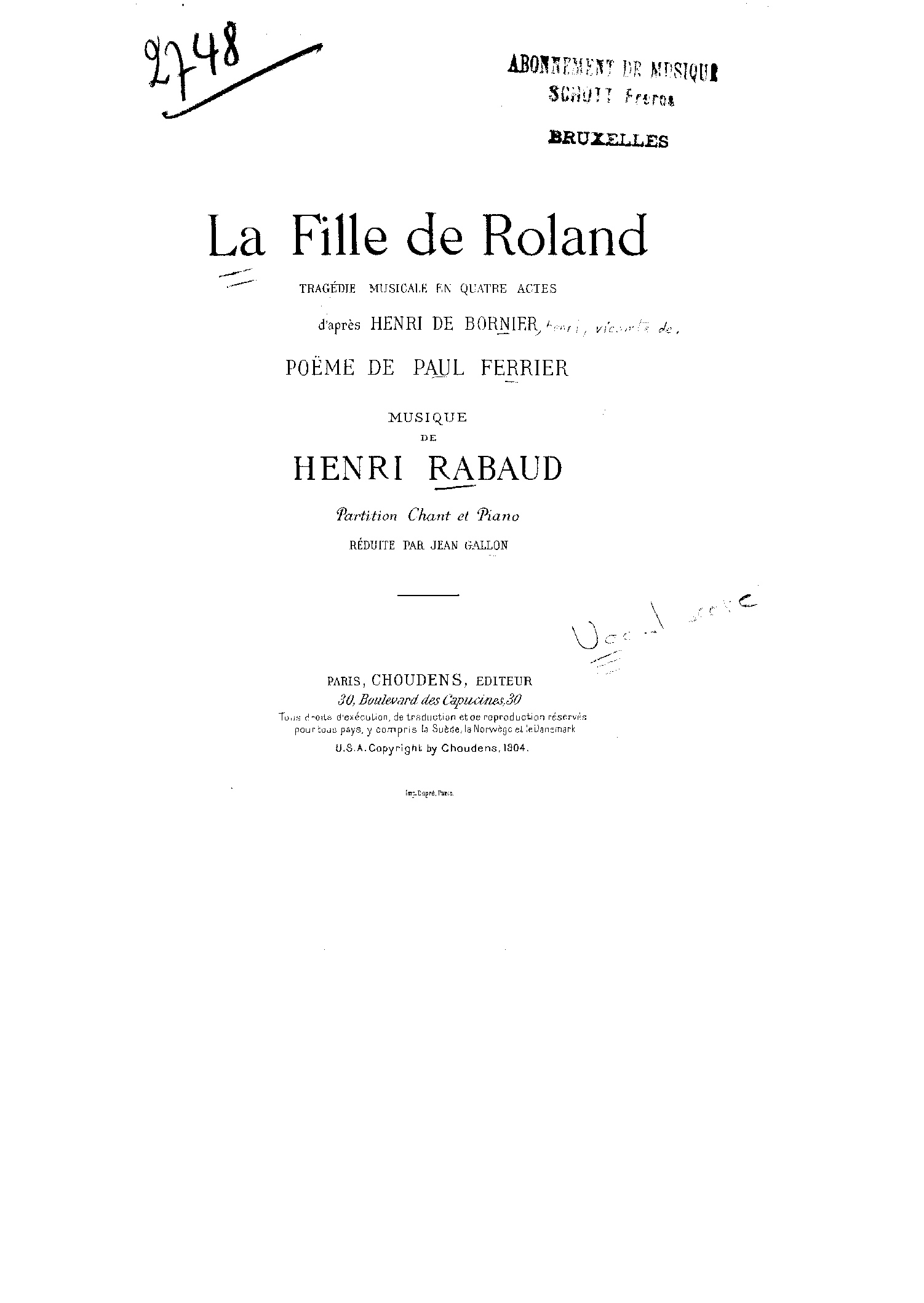 Paul Ferrier (1843-1920), after Henri de Bornier (1825-1901)