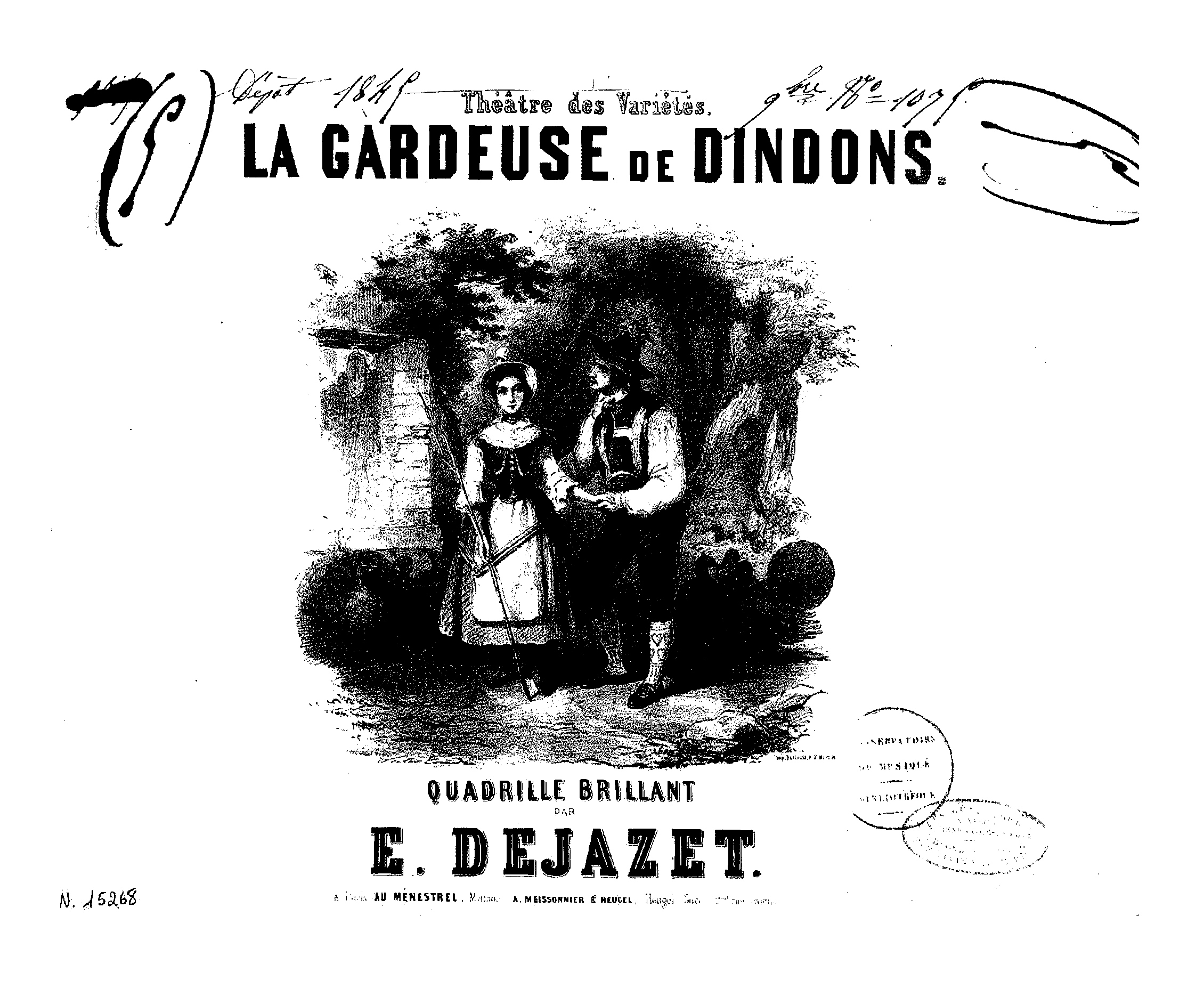 Publication noted in the Bibliographie de la France : 34e année, Nº 32, 9 Août 1845, p.428, reg.112. (vocal score)