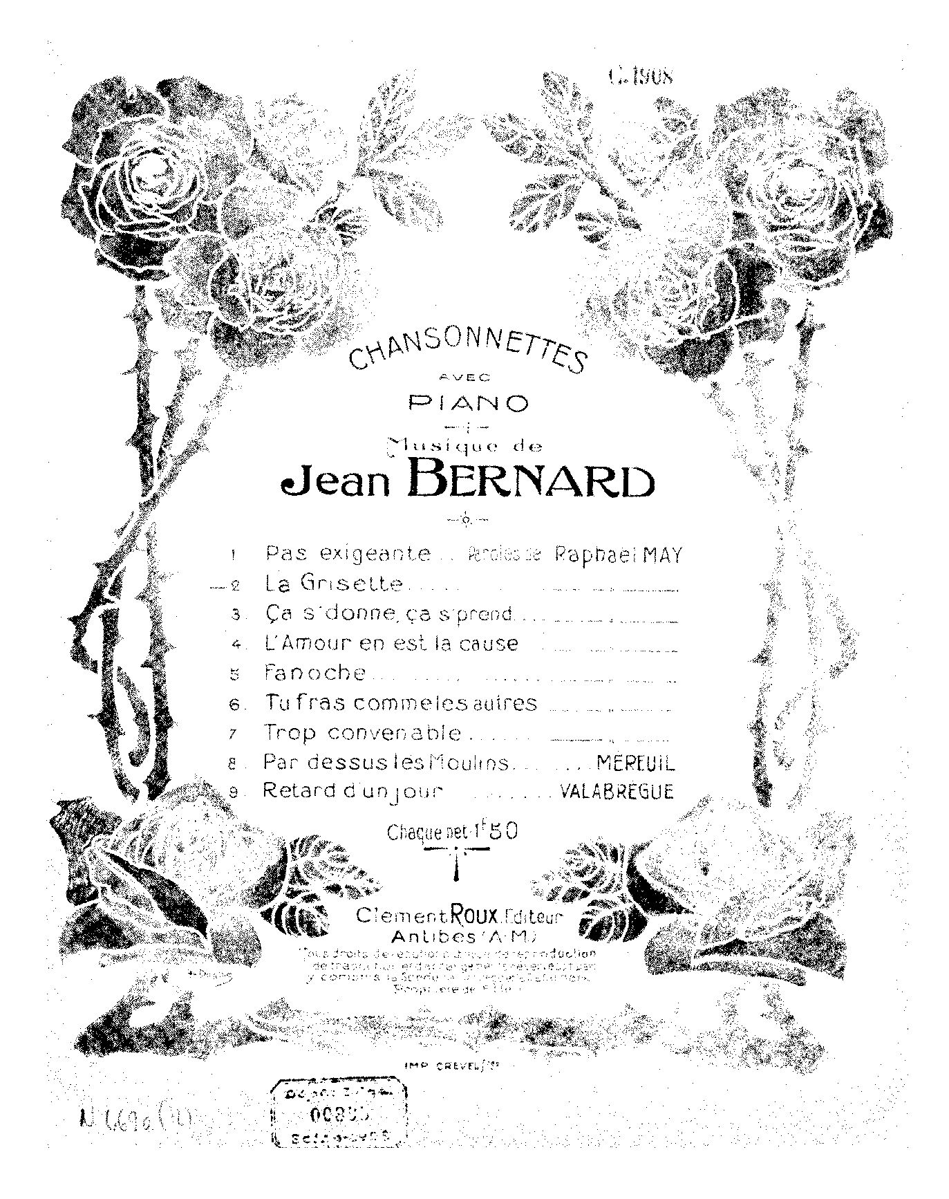 | Genre Categories | Chansons; Songs; For voice, piano; |