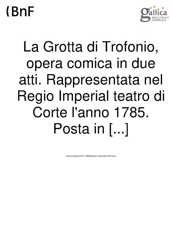 | Genre Categories | Opera buffa; Theatrical Works; Operas; |