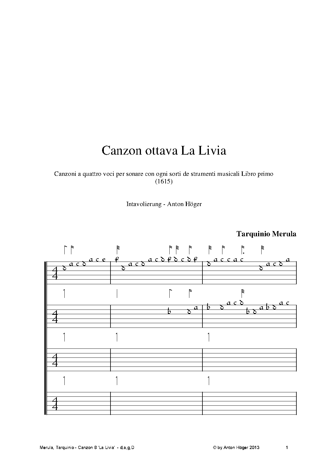 | First Publication | 1615 in Canzoni a quattro voci per sonare con ogni sorti de strumenti musicali, Op.1 (No.8) |