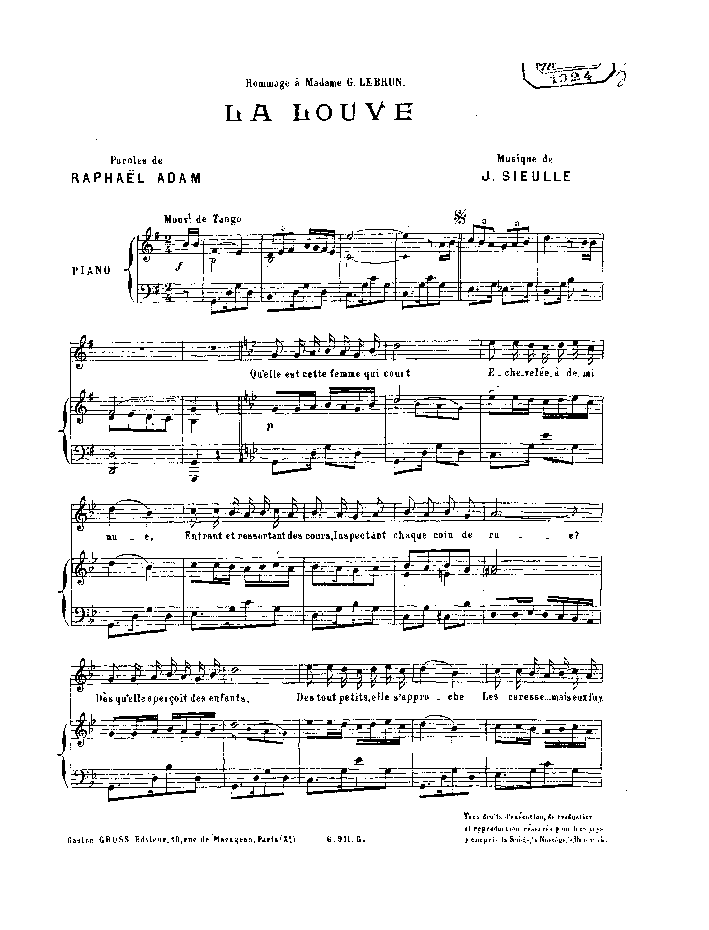 | Dedication | hommage à Madame G. Lebrun |