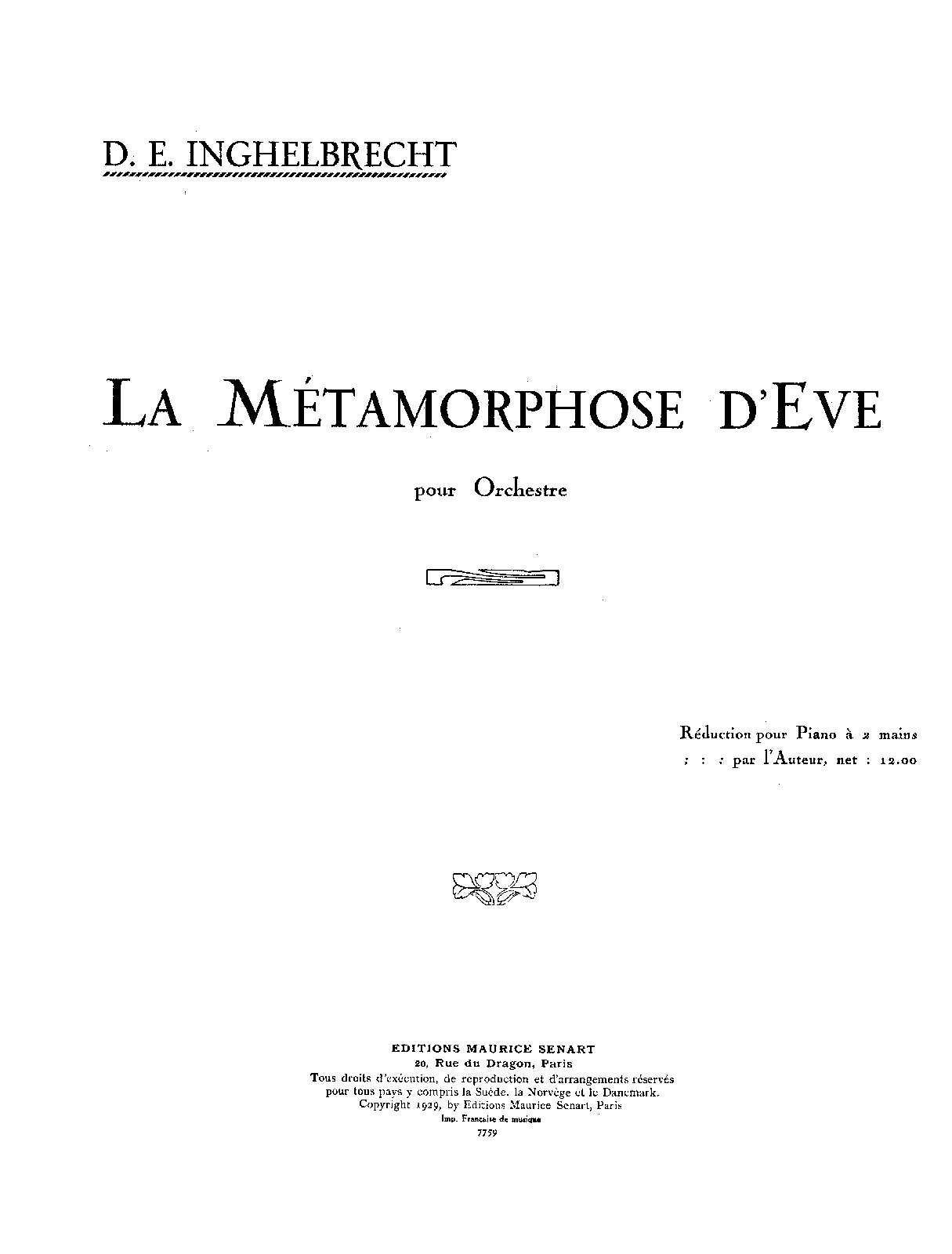 Publisher. Info. Paris: Maurice Senart, 1929. Plate E.M.S. 7759.