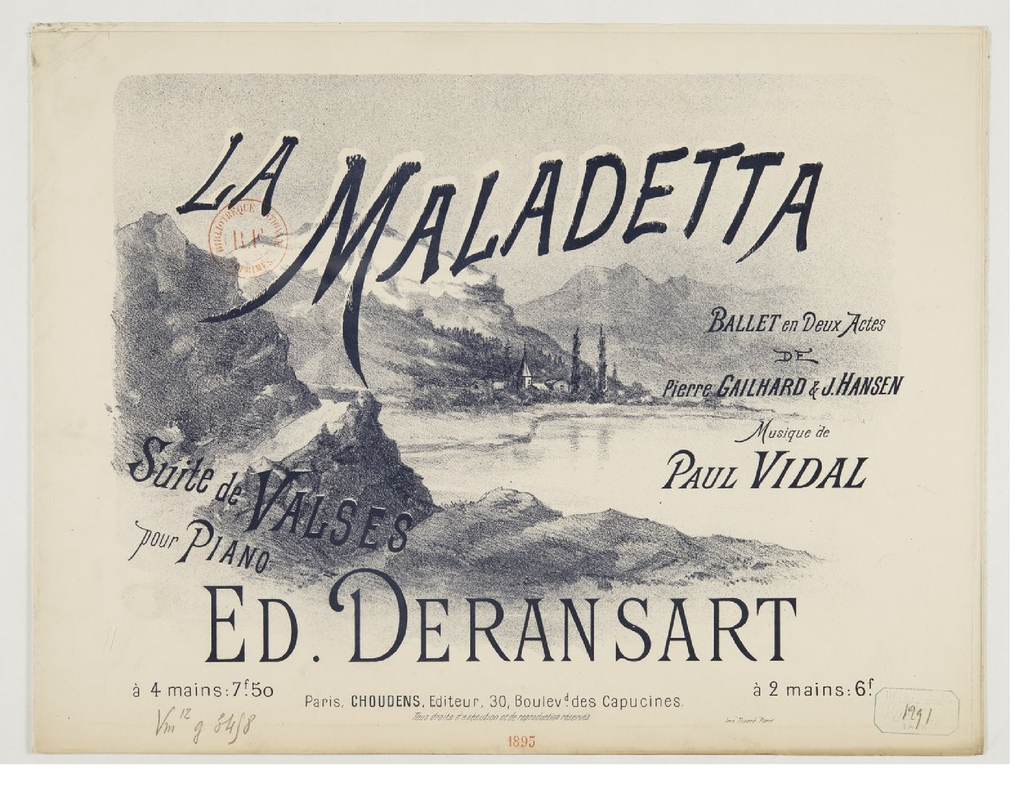 Choreography was by J. Hansen (Joseph Hansen, 1842–1907).) As noted at NYPL, libretto/scenario was also published separately, by C. Lévy in the same year (1893). (3 tableaux in the libretto, 4 in the piano score, 3 acts and 5 tableaux in the La Scala 1894/95 revision whose libretto is also listed in the NYPL catalog, published by Sonzogno.) - Schissel