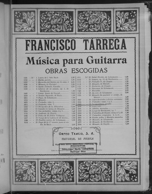 Publisher. Info. Madrid: Orfeo Tracio, n.d. Plate I.A. 2089.