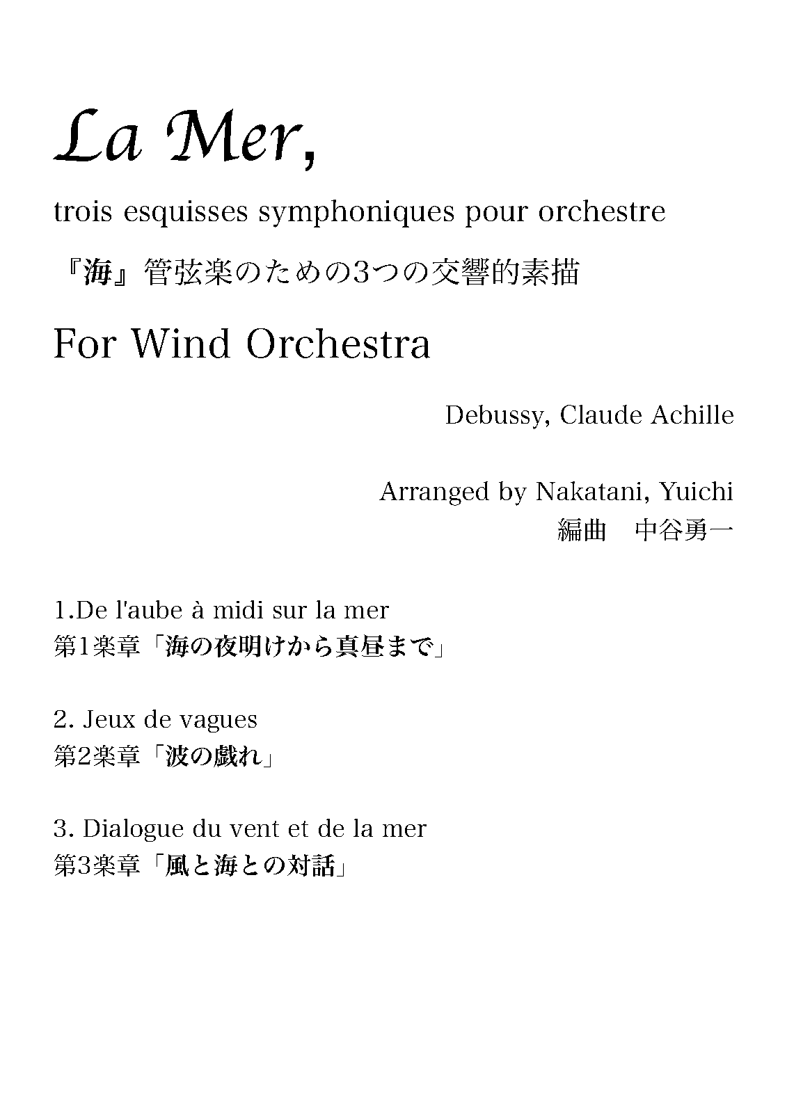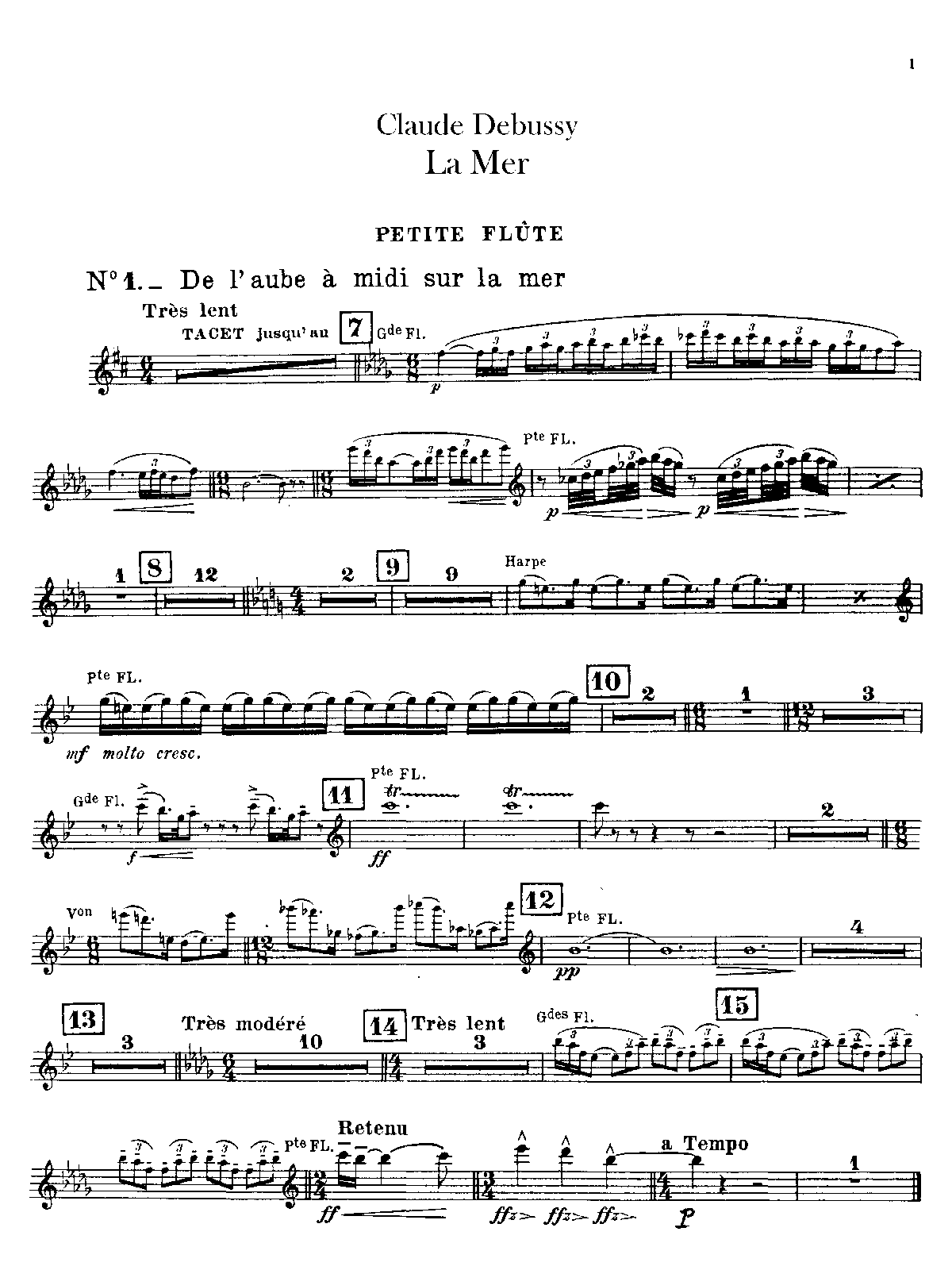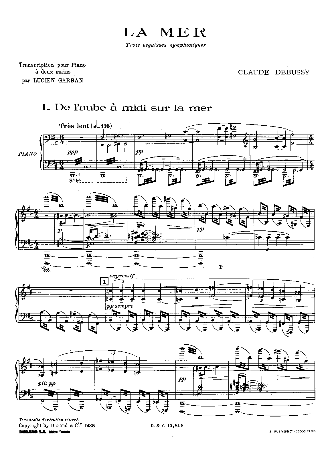 ⇒ 4 more: Complete Score, low resolution (50 dpi) • 1. De l'aube a midi sur la mer • 2. Jeux de Vagues • 3. Dialogue du Vent et de la Mer