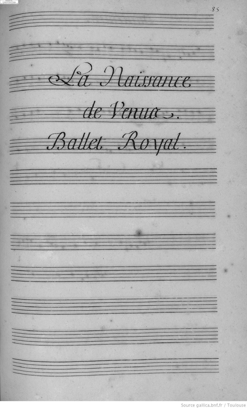 | Instrumentation | Rôles : Neptune (Fa 4), Thetis (Ut 1), les trois Grâces (Sol 2 (2), Ut 1), Ariadne (Ut 1), Orphée (Ut 3). - Choeur des Tritons : Sol 2, Ut 3, Ut 4, Fa 4. - Orchestre : Sol 1, Ut 1, Ut 2, Ut 3, Fa 4. - Orchestre : Sol 1, Ut 1, Ut 2, Ut 3, Fa 4. - Mention d'instruments sous la musique : "Viollons". - Mention des danseurs : "Monsieur (Philippe d'Orléans) et "Madame" (Henriette d'Angleterre) |