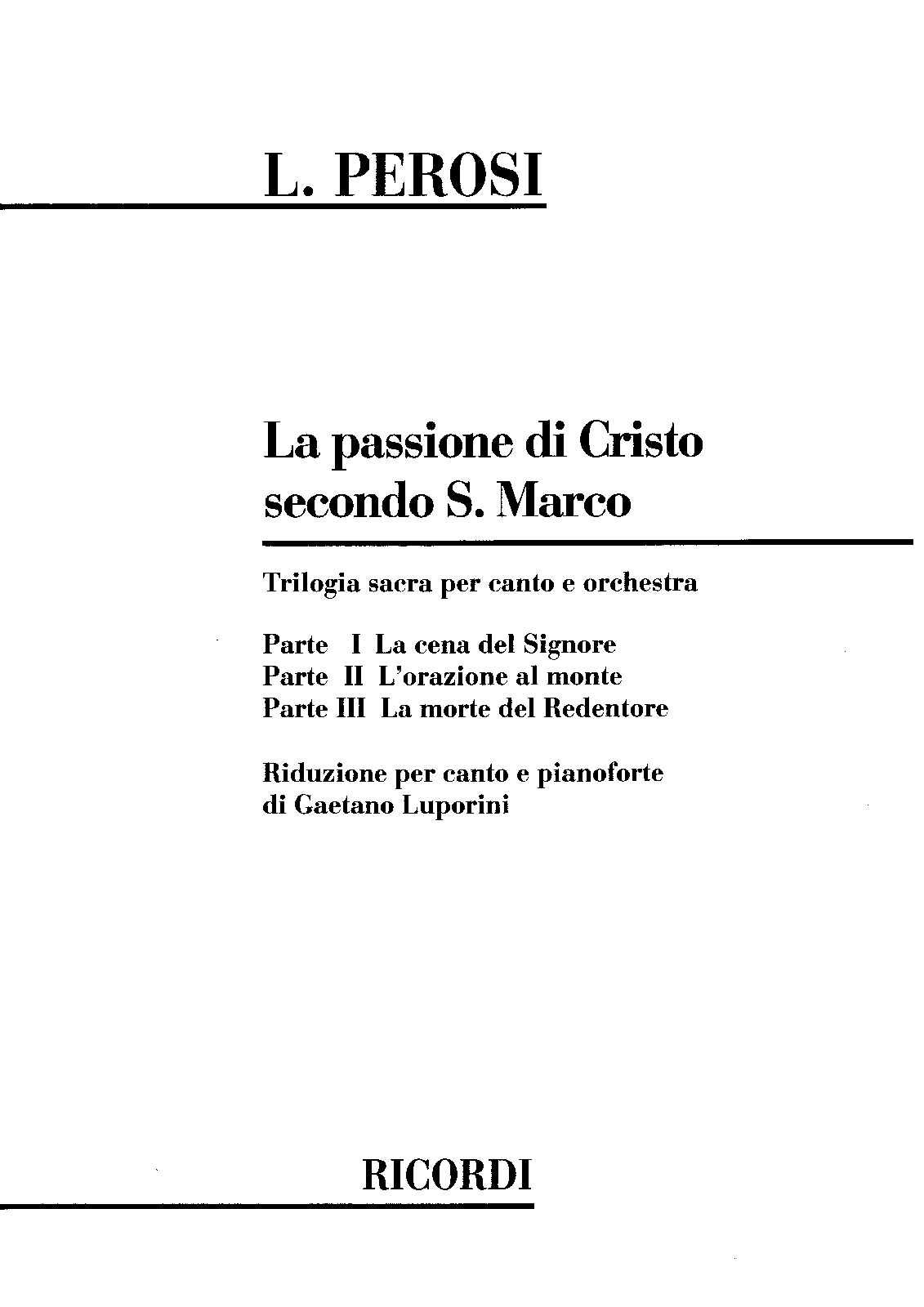 | Genre Categories | Passions; Religious works; For 4 voices, mixed chorus, orchestra; |