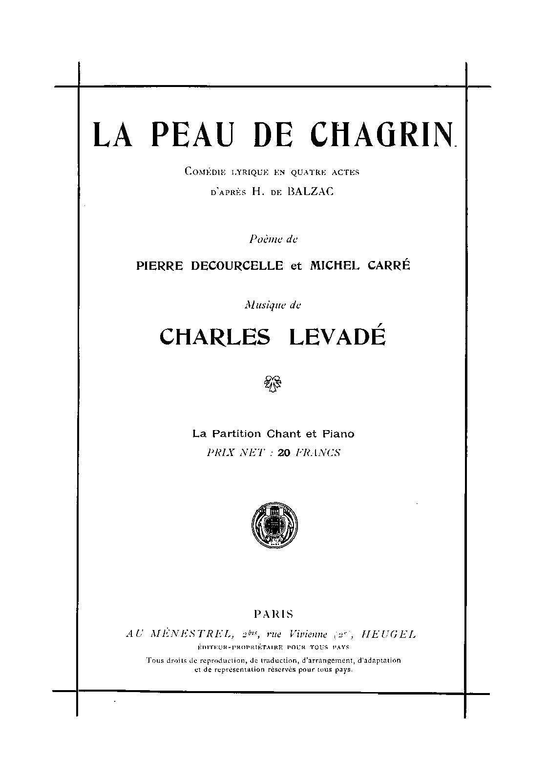 | Librettist | Pierre Decourcelle (1856–1929) and Michel Antoine Carré (1865–1945) after Honoré de Balzac (1799–1850) |