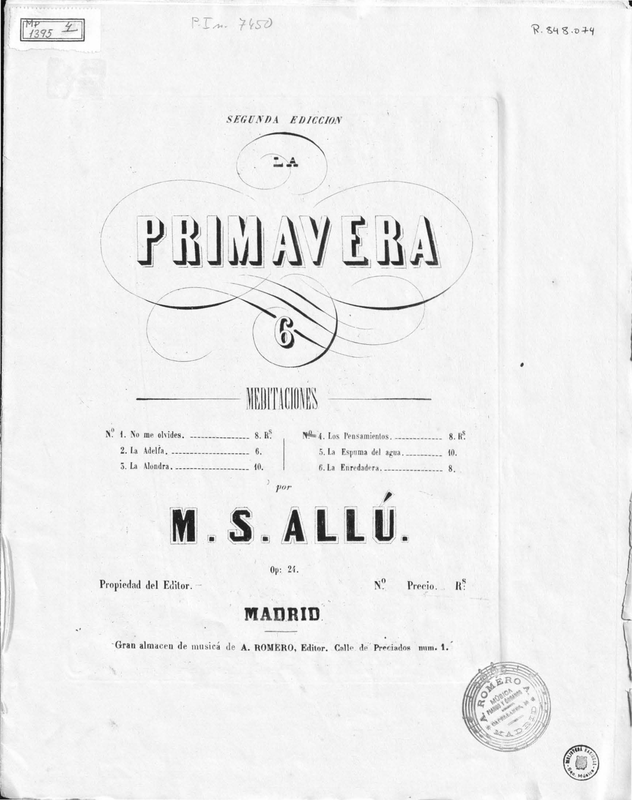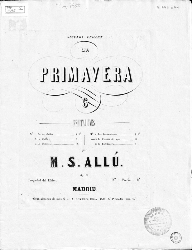 With a few lyrics from José Selgas y Carrasco (1822–1882) (La primavera y el estío. Colección de poesías. Madrid: Lopez y Gullon, 1866).