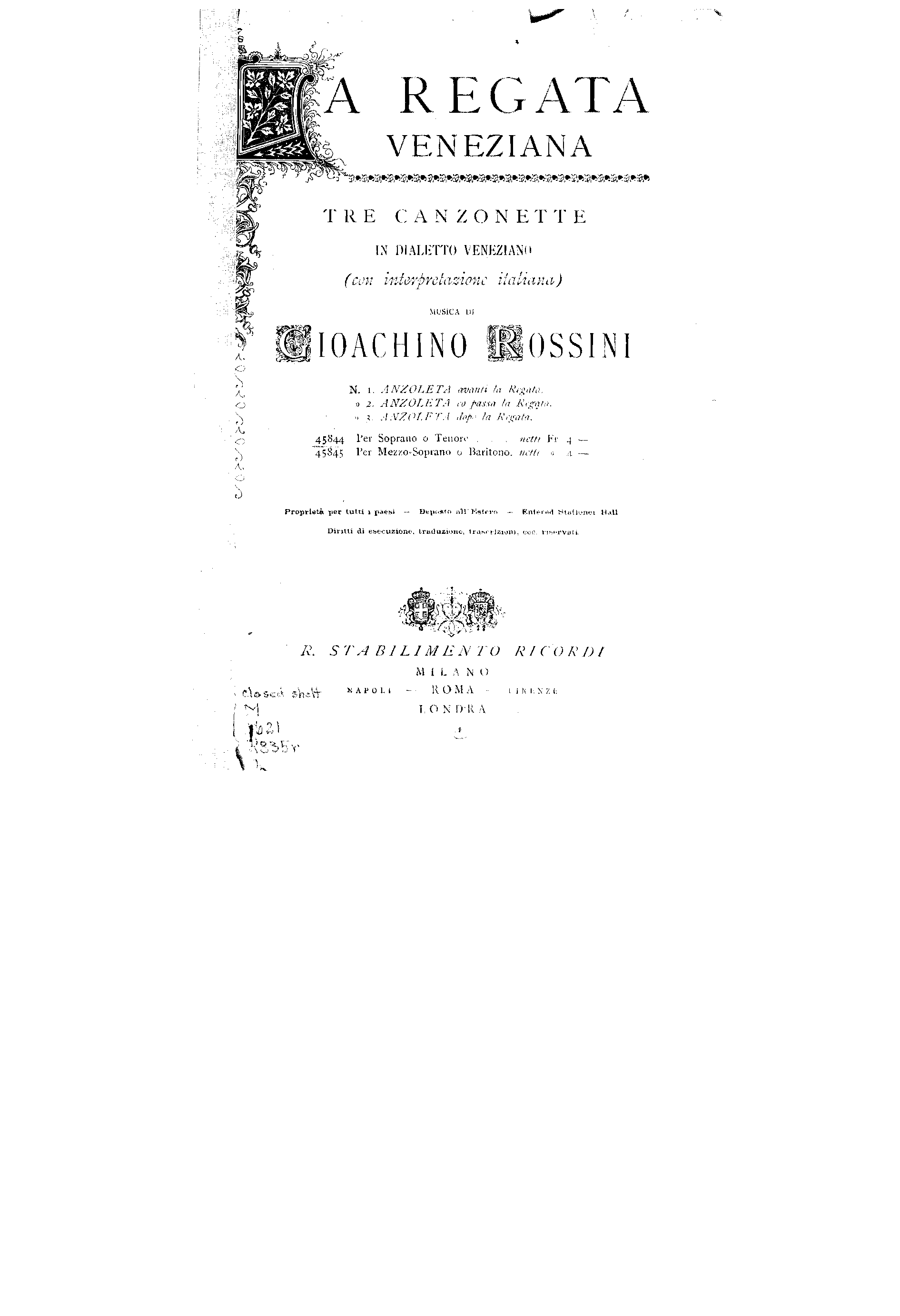 | Extra Information | For another work (a duet) by Rossini with the same title, see No. 9 from Soirées musicales. |