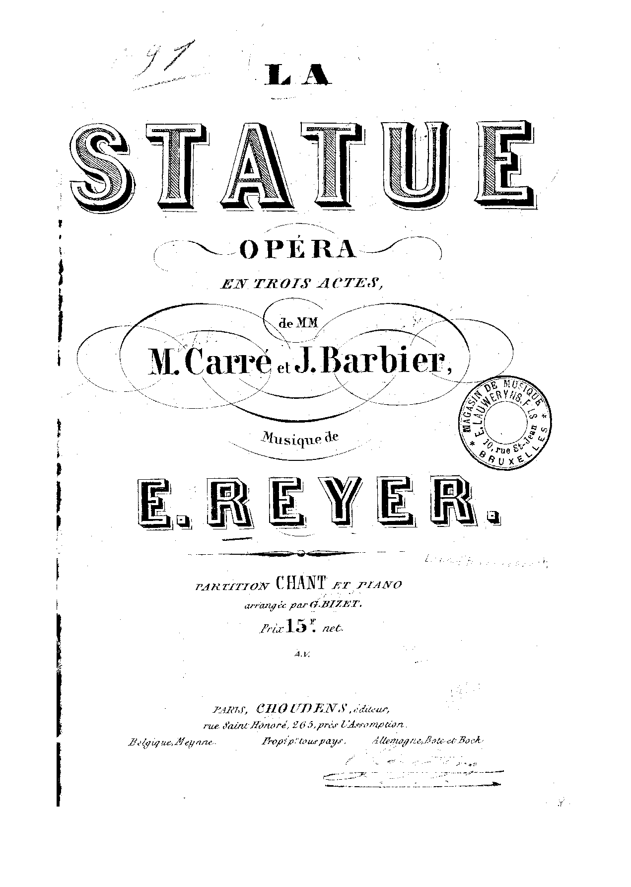 First complete recording of music from "La statue." Note that for act 2 two separate files are included, one preceding ballet music, another succeeding it. Based on files #72779 and #51708.
