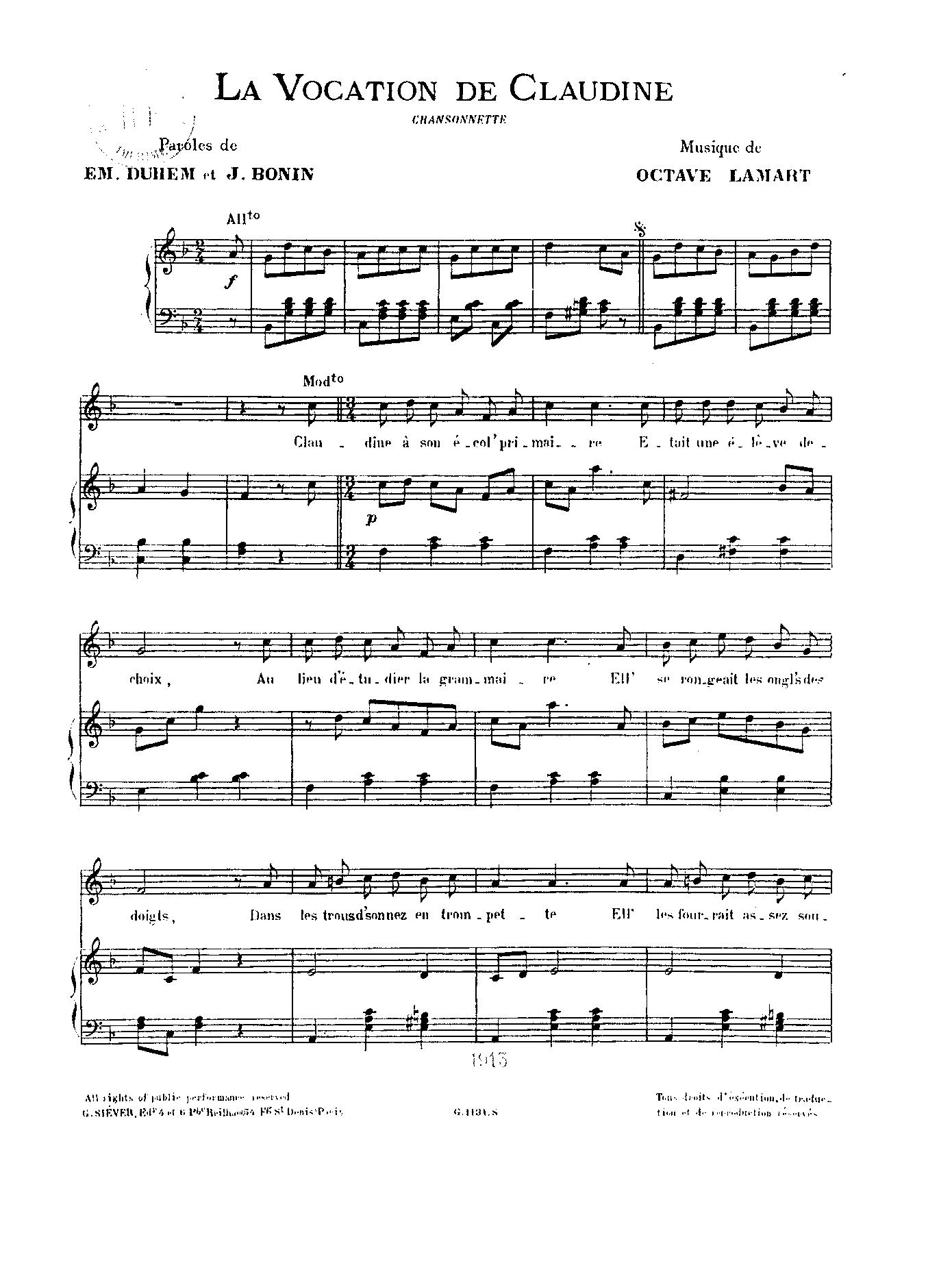 | Genre Categories | Chansons; Songs; For voice, piano; |