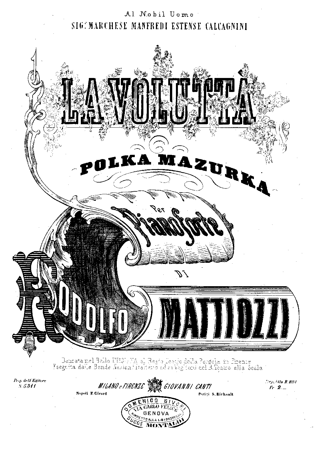 | Dedication | Al Nobil Uomo Signor Marchese Manfredi Estense Calcagnini |