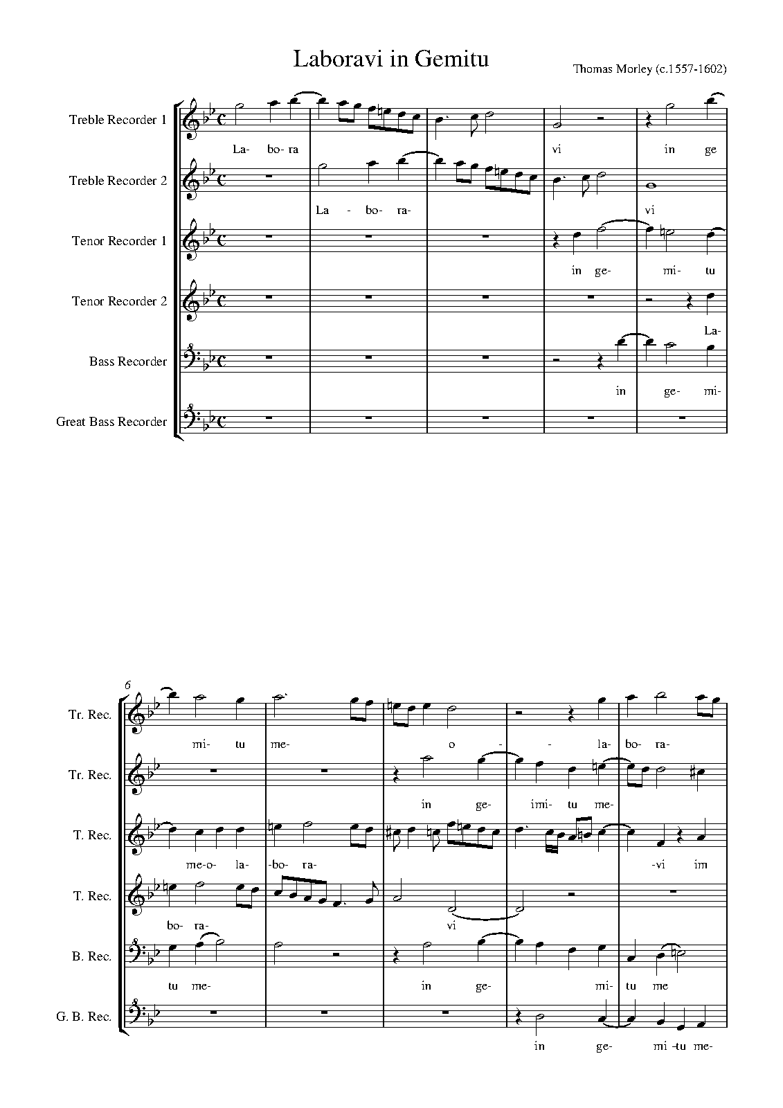 Possibly or even most likely by Rogier, not by Morley as originally attributed here (and when discovered/published in 1959?), and just a copy of Morley of a motet by Rogier, misattributed ; Phillips, Peter, '"Laboravi in gemitu meo": Morley or Rogier?', Music and Letters,