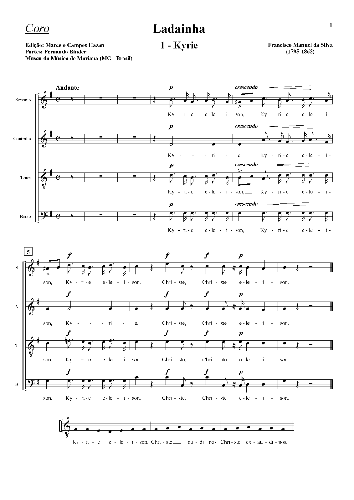Instrumentation Chorus: Sopranos, Altos, Tenors and Basses