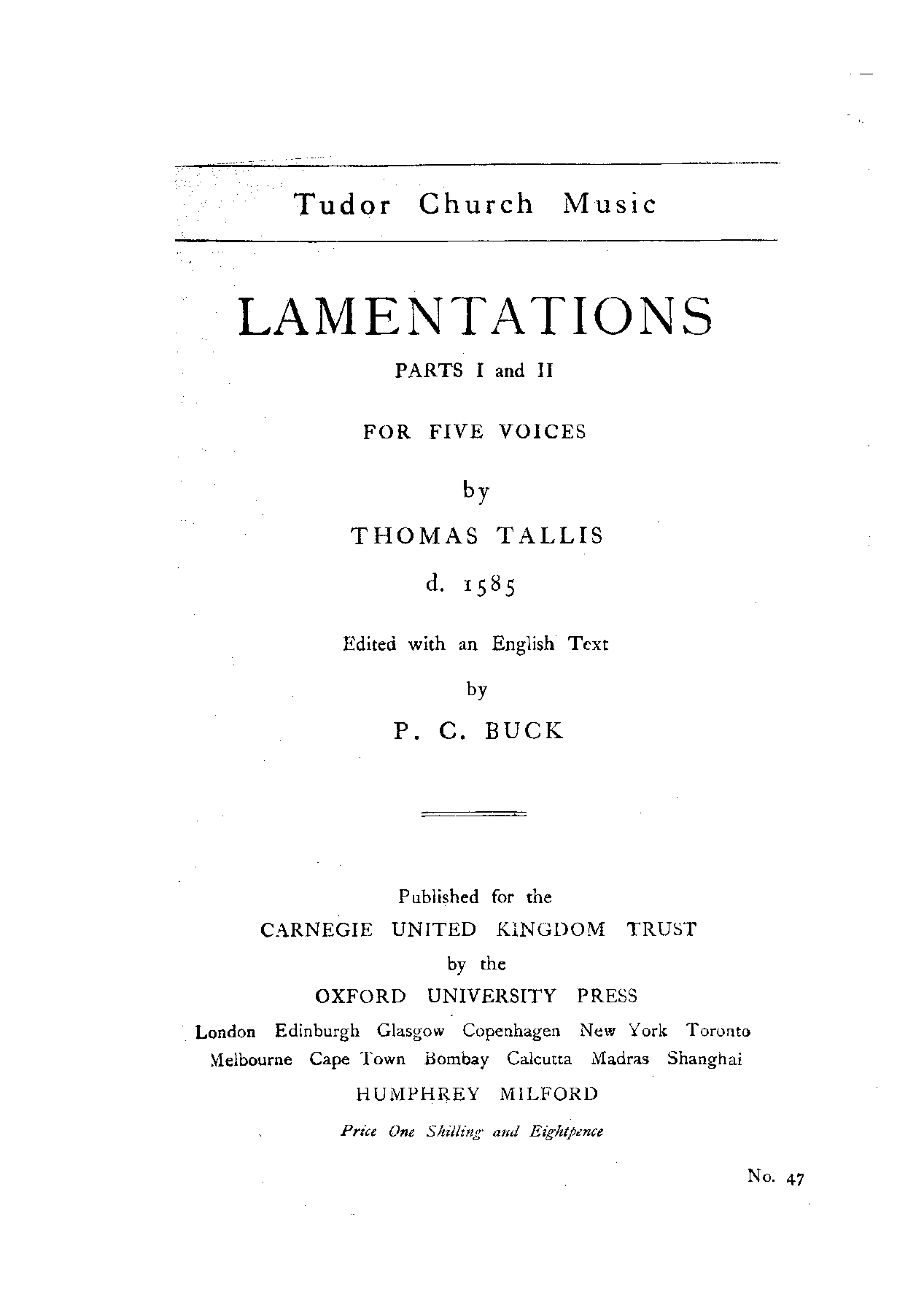 Lamentations for Maundy Thursday were published in 1914 by New York: Gray.