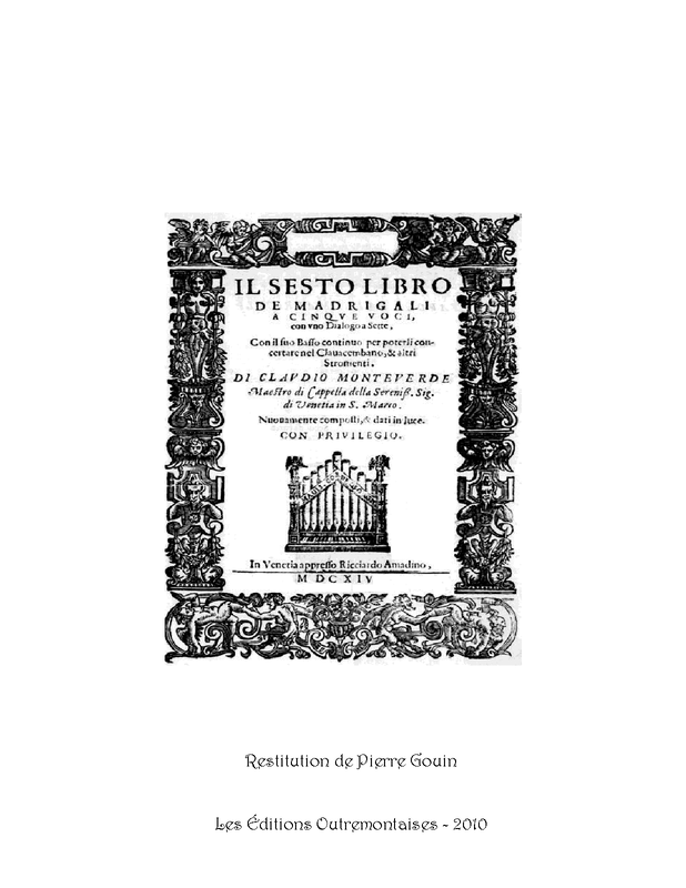 | Genre Categories | Madrigals; For 5 voices, continuo; For voices with continuo; |