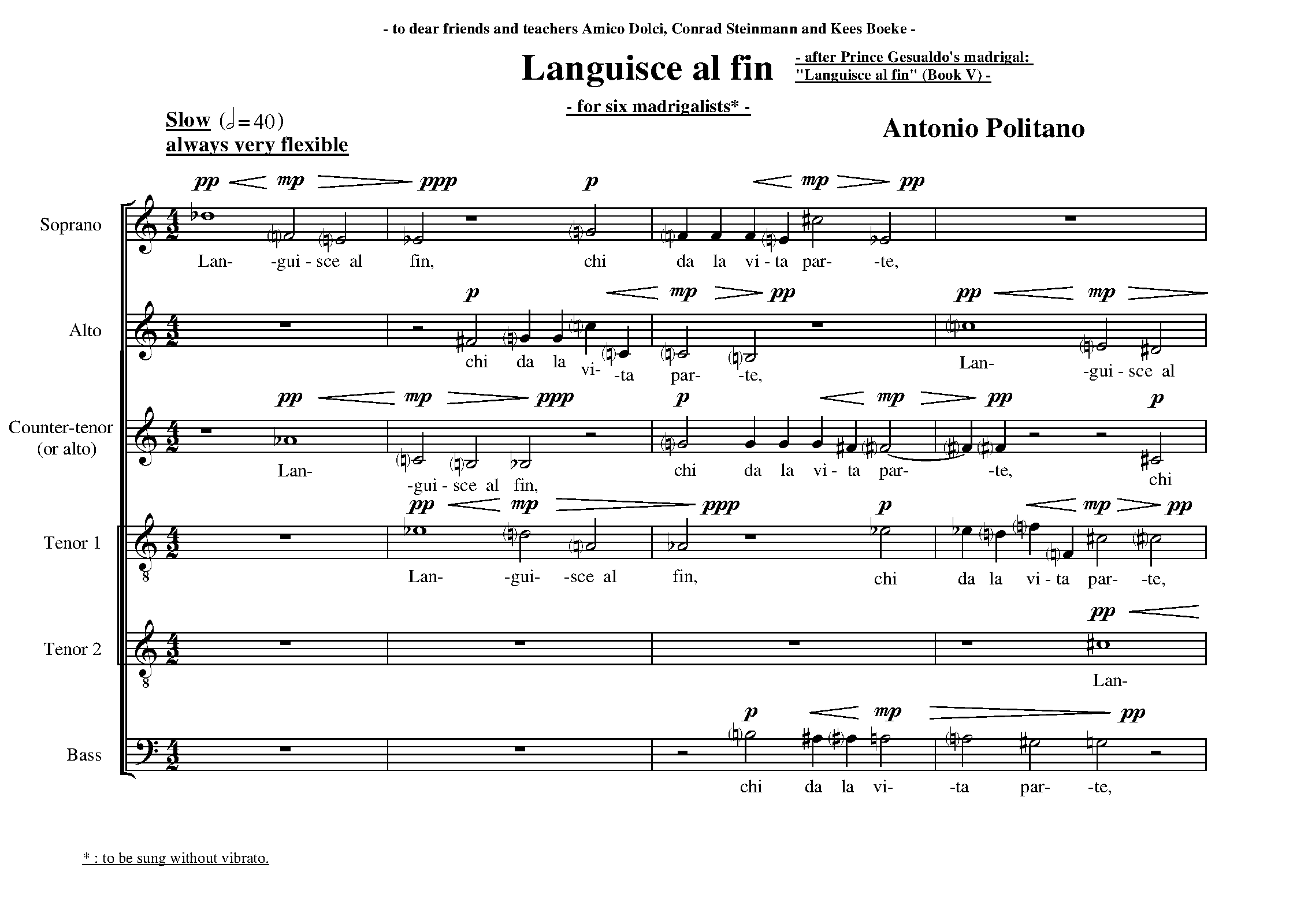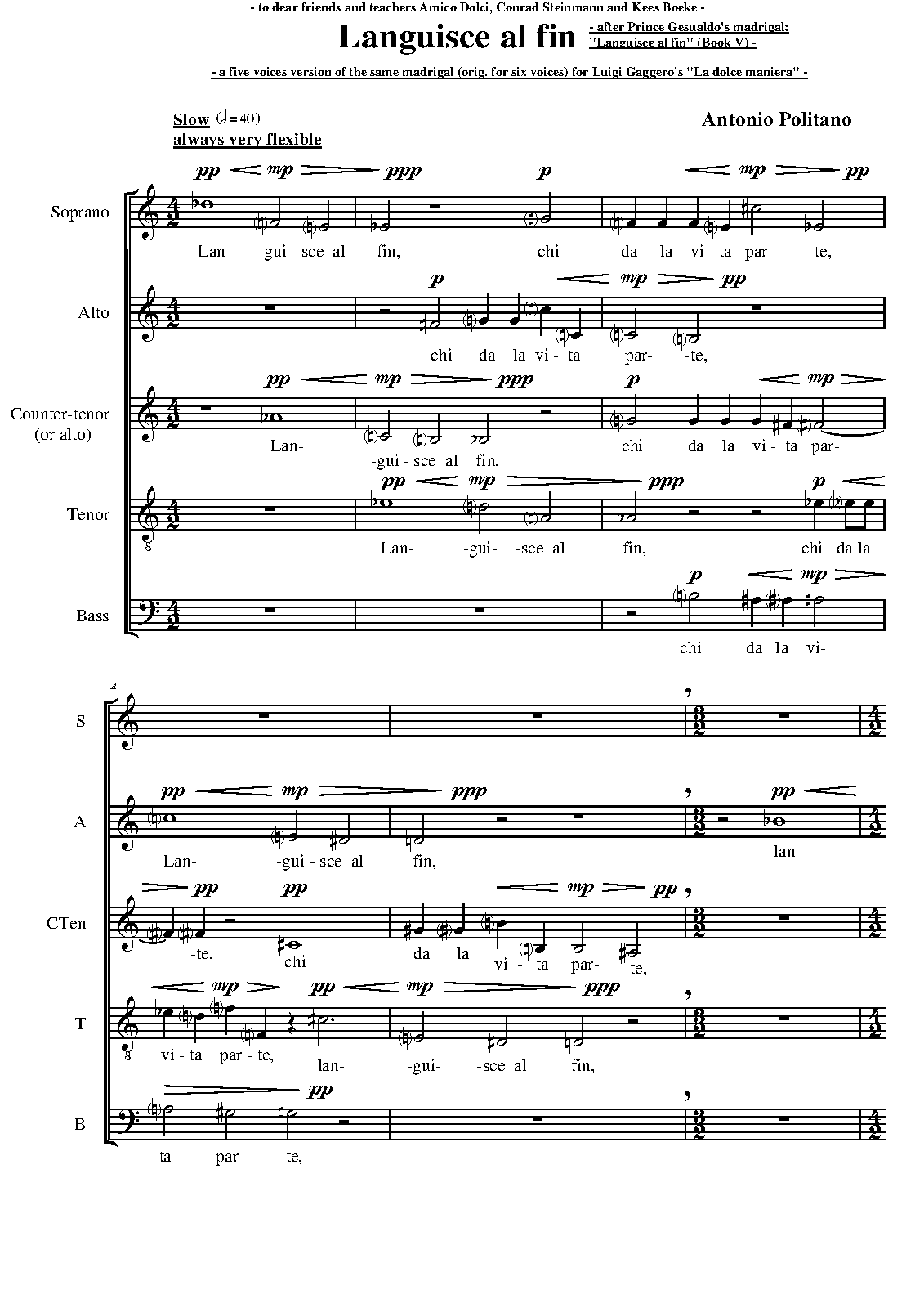 | Work Title | Languisce al fin (madrigal after Carlo Gesualdo's 'Languisce al fin') |