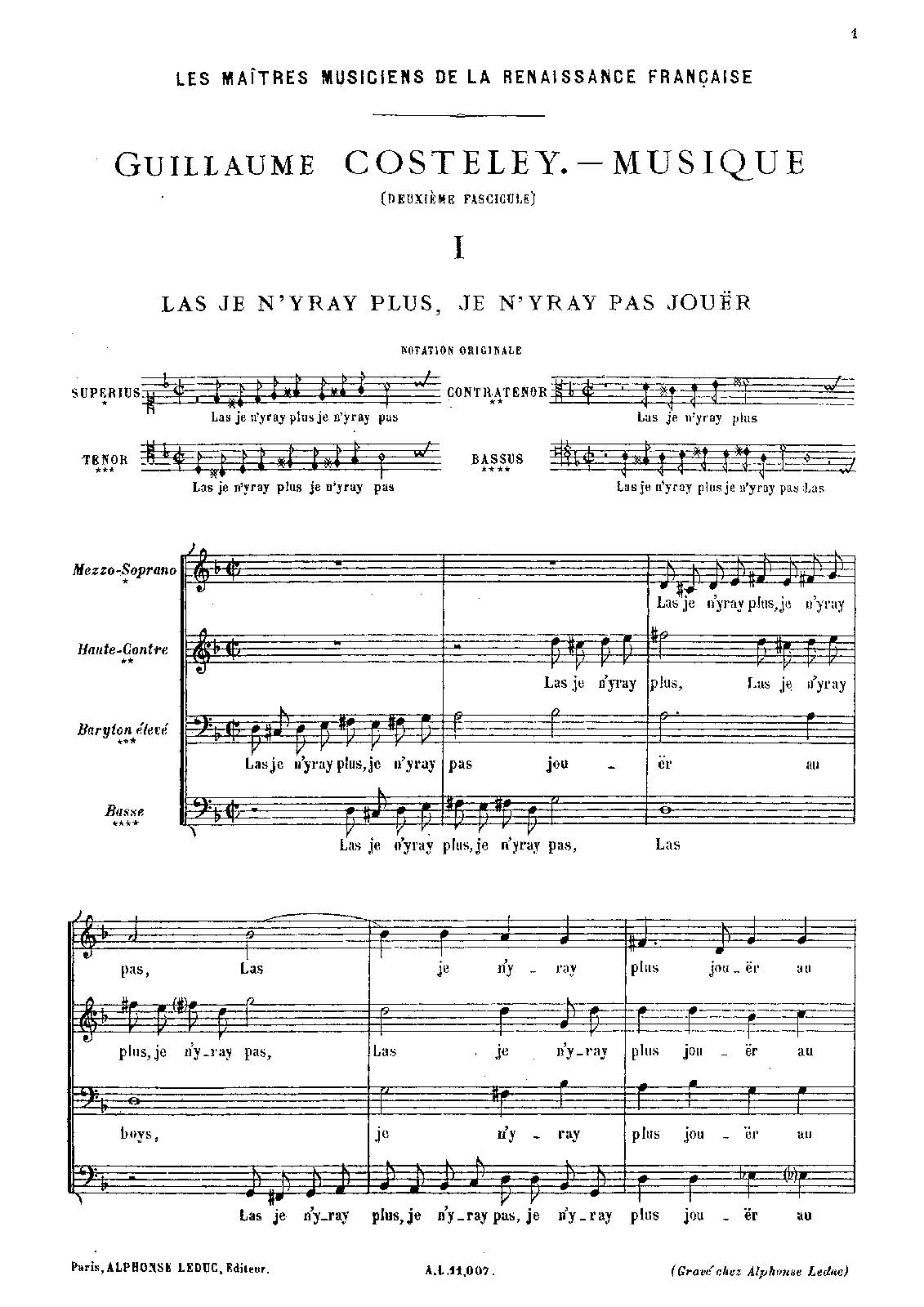 | Work Title | Las Je n’yray plus, je n’yray pas jouër |