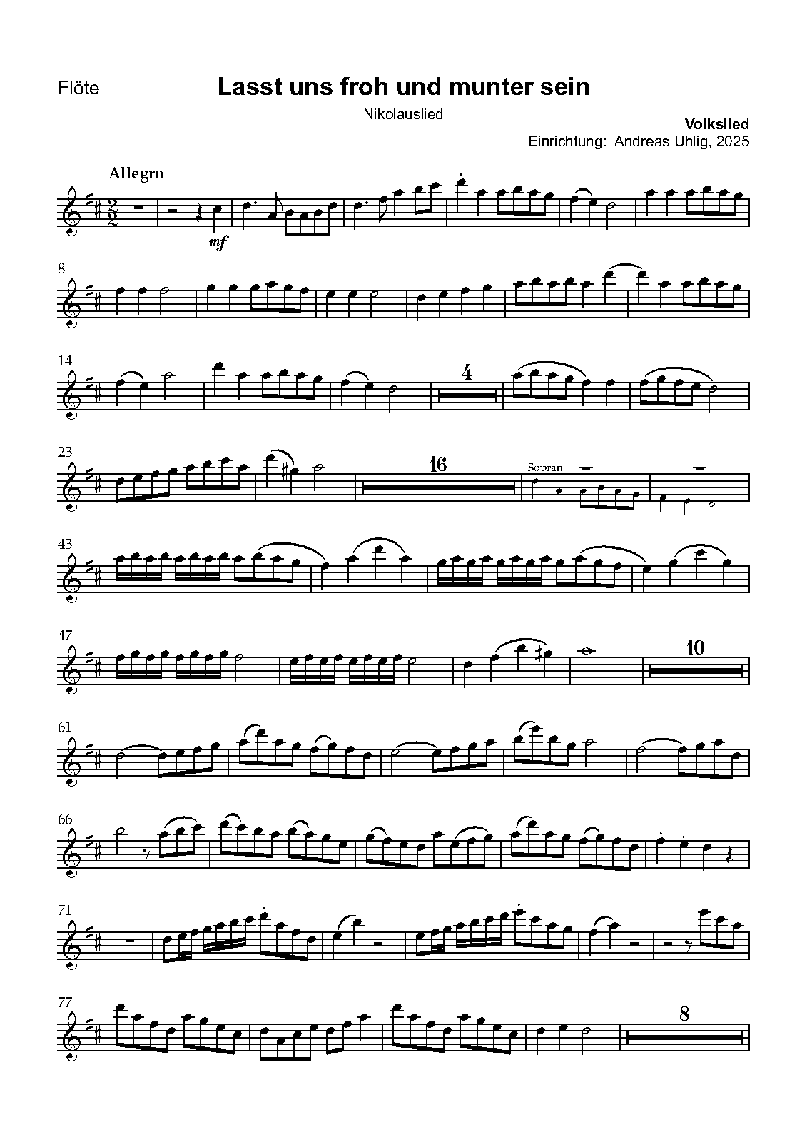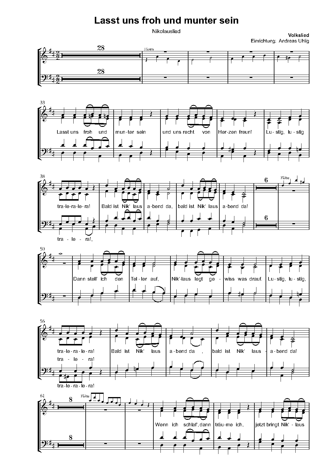 | Work Title | Lasst uns froh und munter sein |