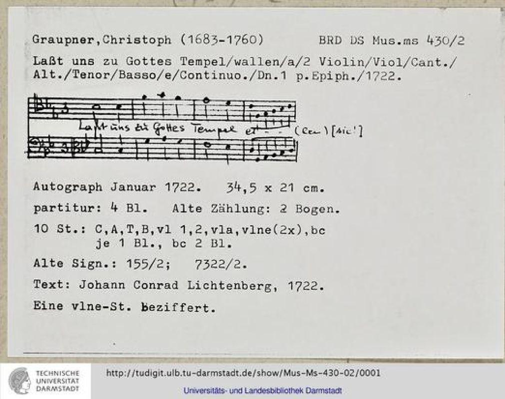 Lasst uns zu Gottes Tempel eilen, GWV 1112/22 (Graupner, Christoph)