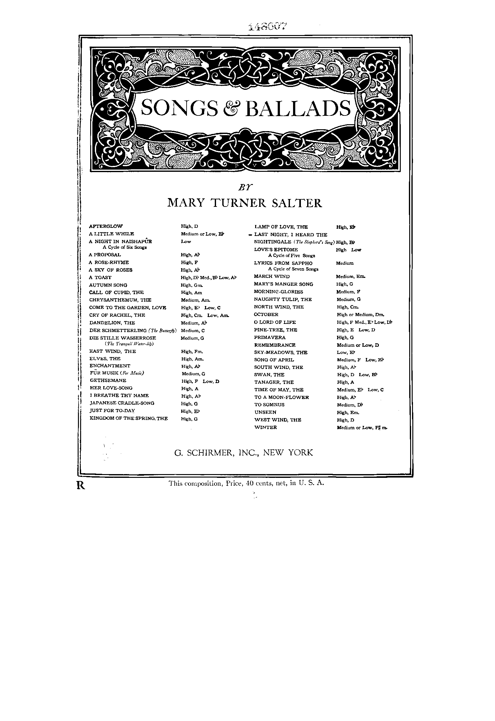 | Genre Categories | Songs; For voice, piano; For voices with keyboard; |