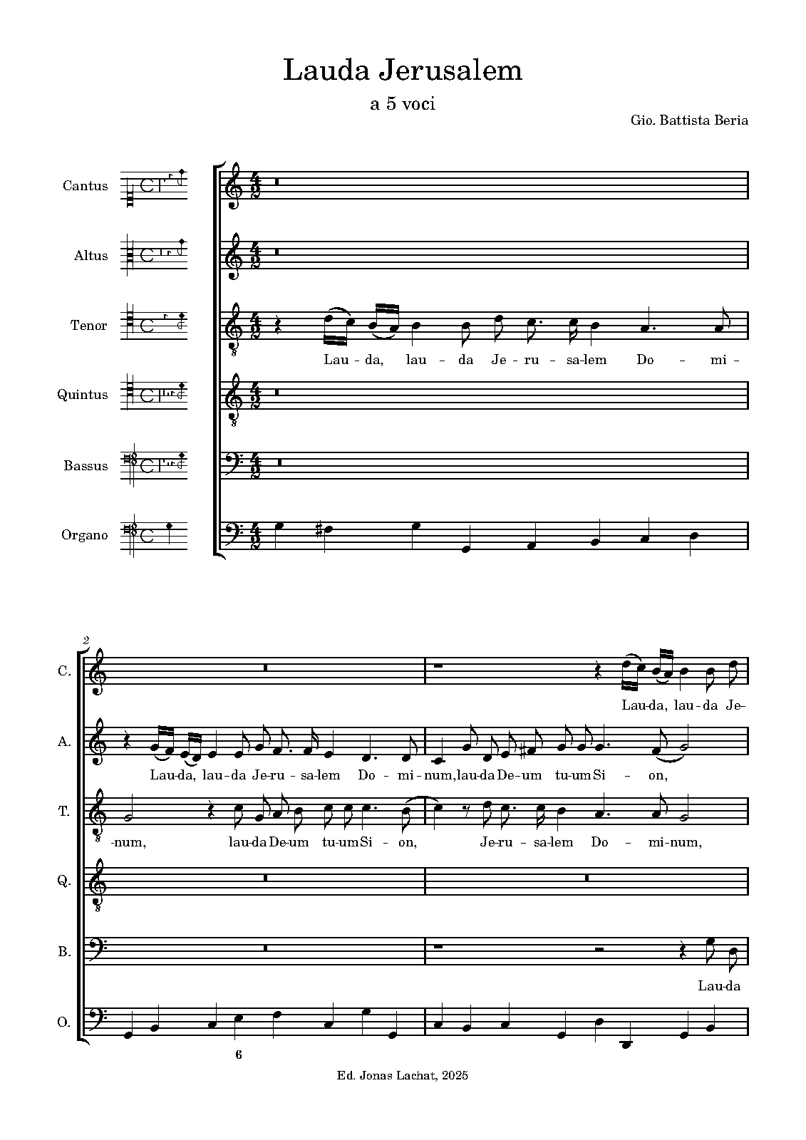 | Extra Information | From the collection: Giovanni Battista Beria, Concerti musicali, messa, salmi a cinque e a tre voci per le domeniche, feste della B. V. e delli apostoli con Litanie, e motetto a 5., libro primo, opera IV, Milano, fratelli Camagni, 1671 (RISM A/I B 2029, ID No.990004821). |