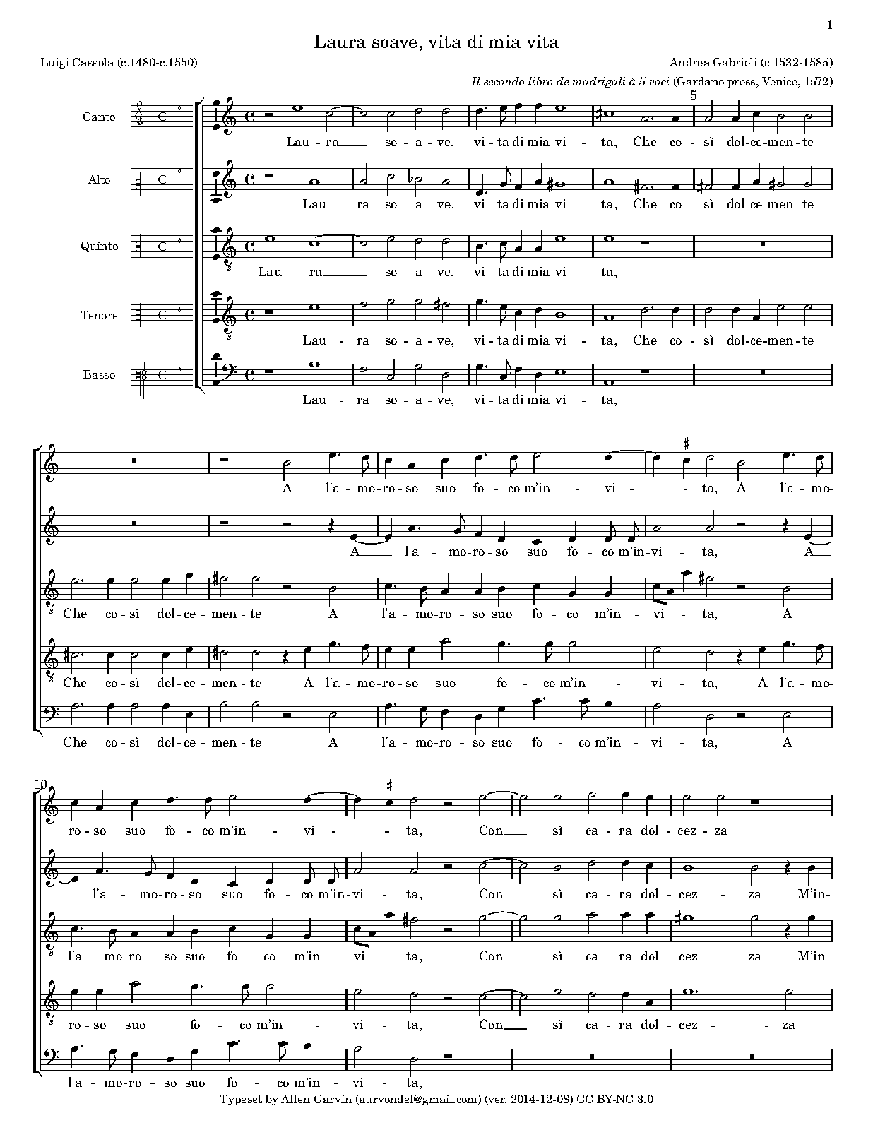 | First Publication | 1572 in Il secondo libro de madrigali à 5 voci (No.3) |