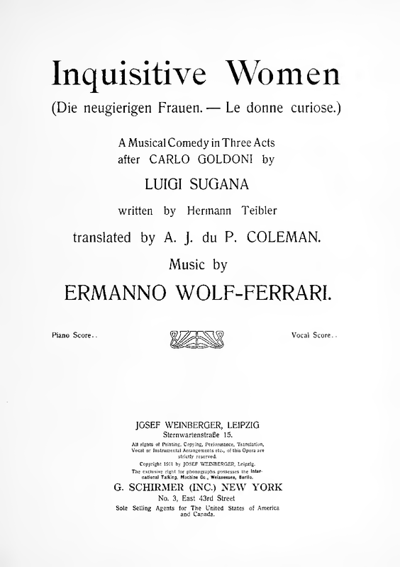 | First Performance. | 1903-11-27 in Munich, Residenz (as Der Neugierigen Frauen) |