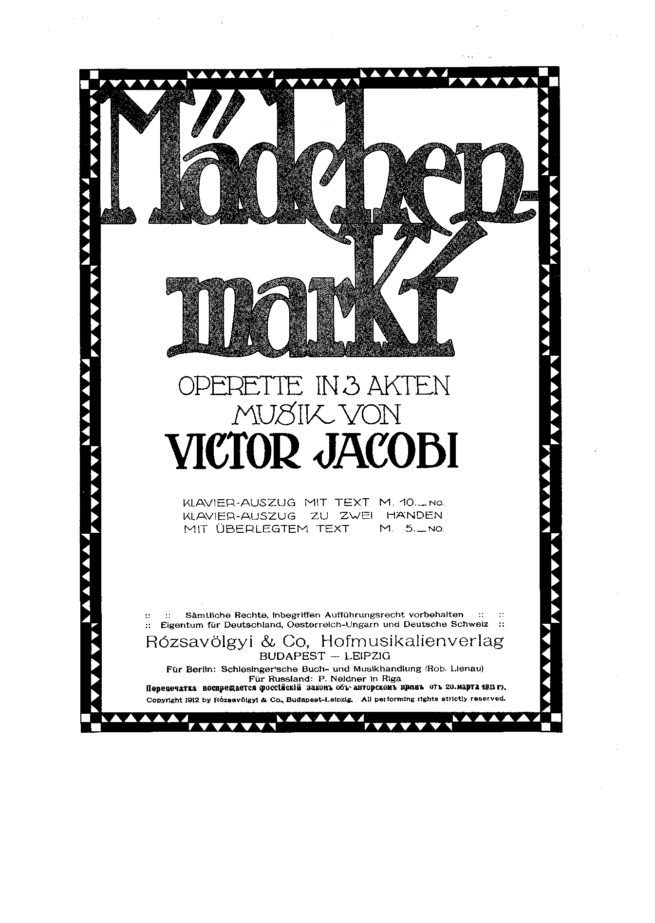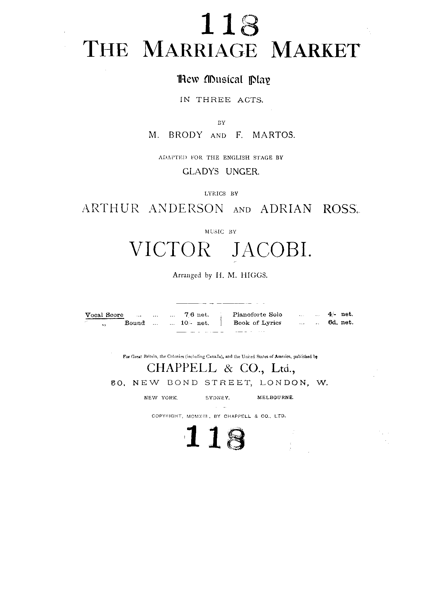 | Alternative. Title | Operetta in Three Acts; The Marriage Market |