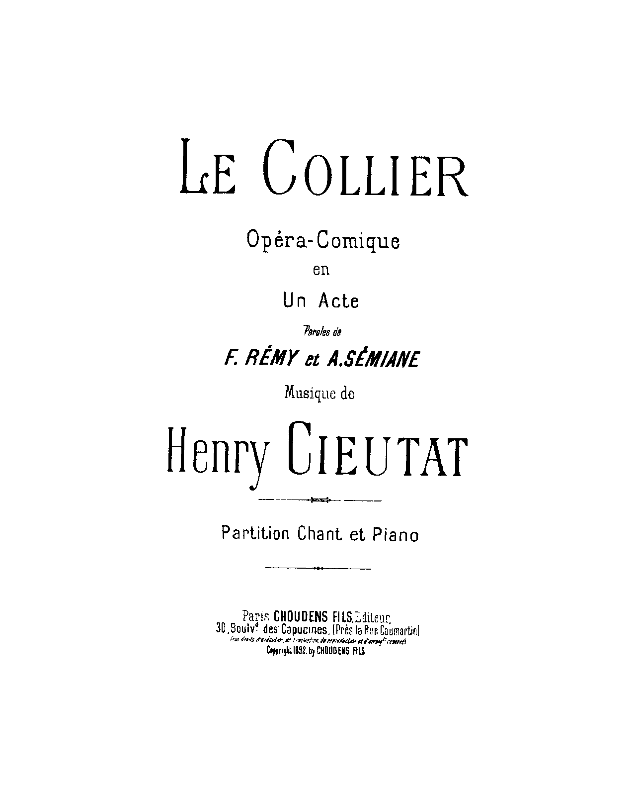 | Librettist | F. Rémy André Sciama (1864–?) |