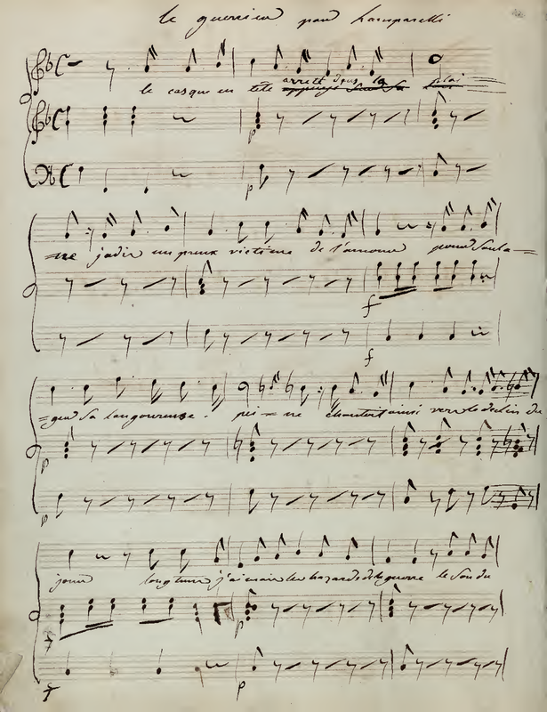 Tagging is subject to correction. Firstly, this is possibly a romance from a collection of romances by Lamparelli, and secondly, the accompaniment instrumentation is not specified, other than being in keyboard format. The collection of romances by Lamparelli lists by harp parts as "par F.J. Naderman fils", so the originals may be something else, such as piano. Tagged for both harp or piano for now, but subject to correction.